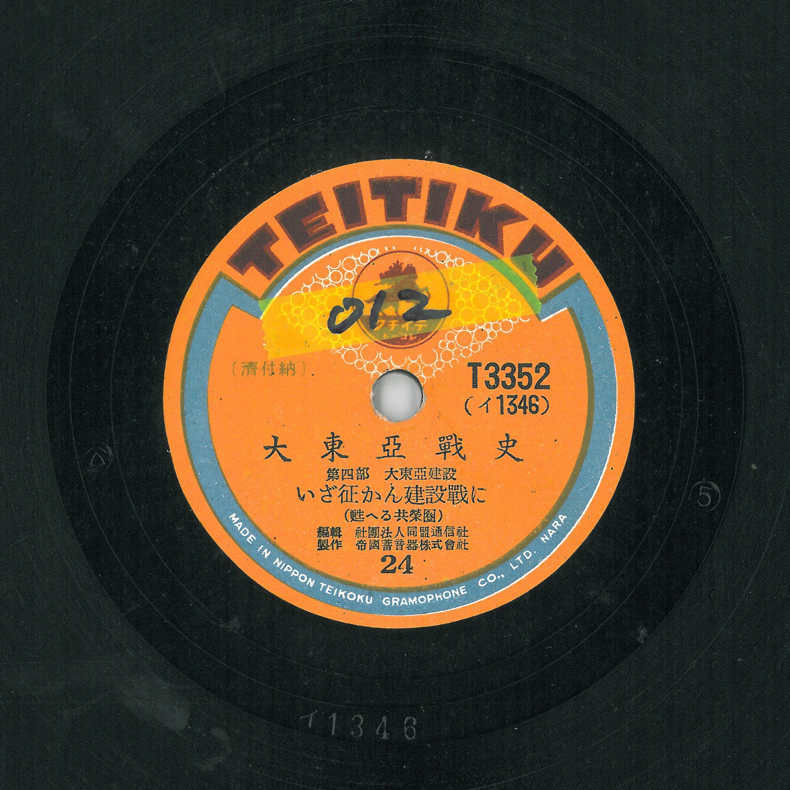 帝國蓄音器株式會社發行套裝唱片《大東亞戰史》,「社團法人同盟通信社」編輯製作,全套共12張唱片,分「民族の進擊」、「大詔渙發」、「擊滅」、「大東亞建設」4部各6集共24集。從戰爭宣傳的立場,呈現1932年滿洲國建立至1942年太平洋戰爭爆發的重要記事。