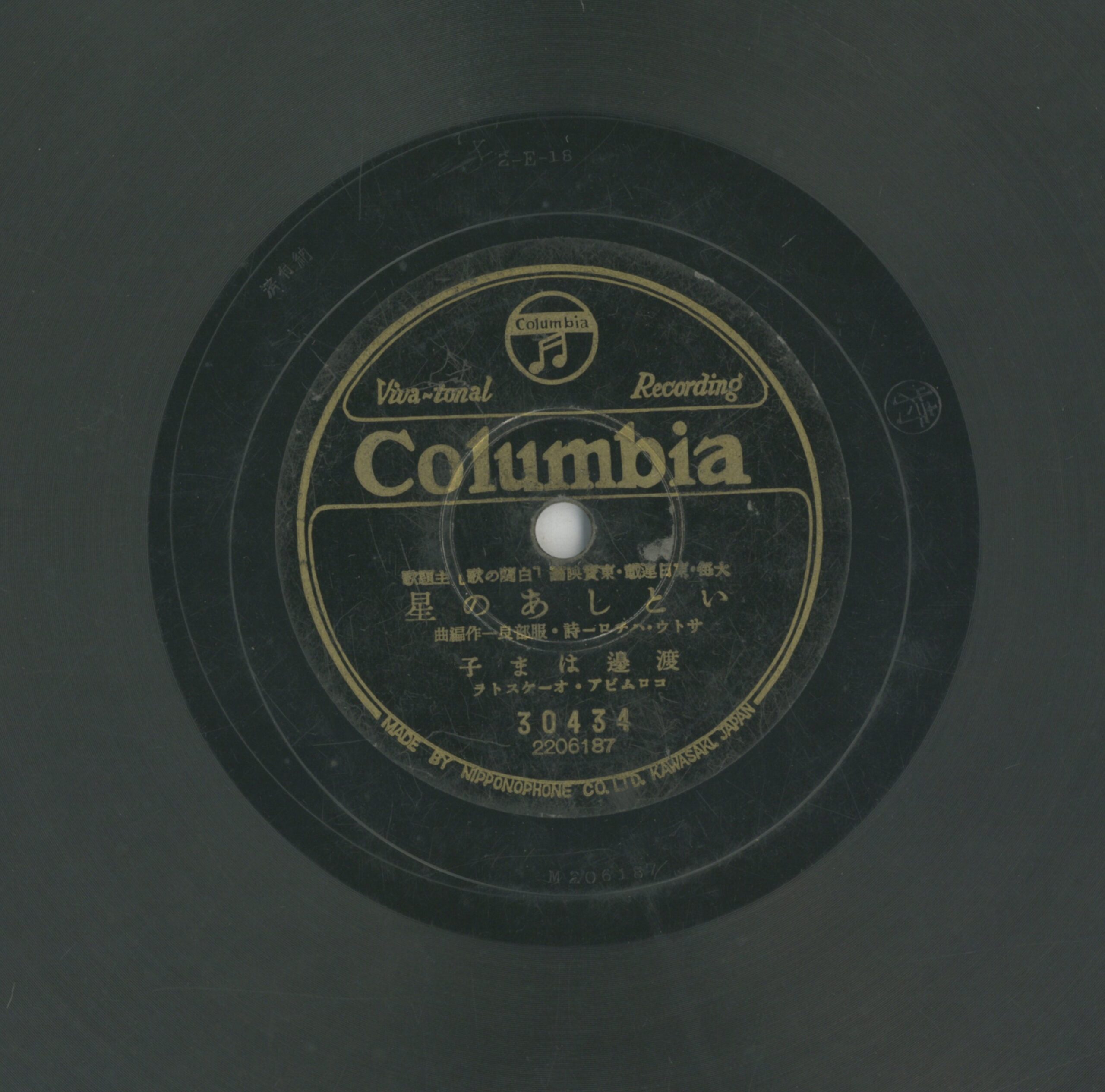 いとしあの星 演出者渡辺はま子演唱創作者サトウハチロー作詞 服部良一作曲關鍵詞#流行歌 #電影 #戰爭時局聲音載體留聲機唱片發行編號日蓄 (古倫美亞)30434專輯年份《大每/東日連載 東寶映畫『白蘭の歌』映畫主題歌》1940其他曲目A-白蘭の歌來源專案臺史博館藏錄音發布(2026) 相關照片