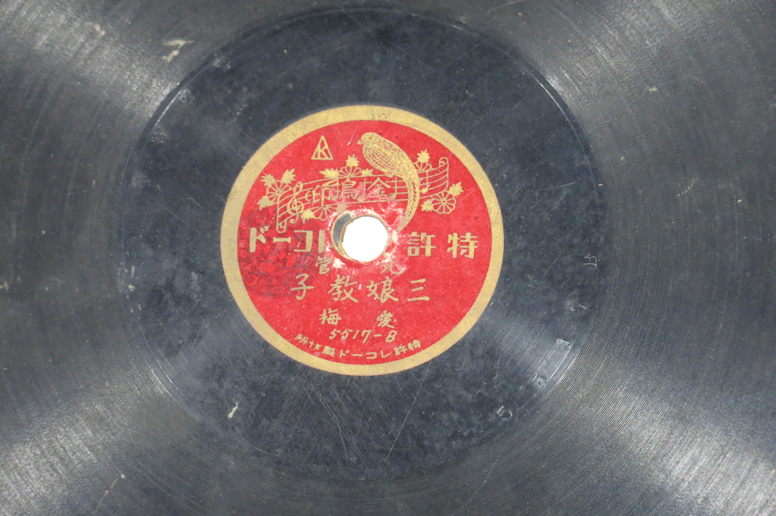三娘教子 (下) 演出者愛梅演唱關鍵詞#京劇 #北管 #正音聲音載體留聲機唱片發行編號特許 (金鳥)5517專輯年份《北管:三娘教子》1926-1929專輯資訊紙板蟲膠鋪面曲盤,上有金鳥印的商標,其普及的年代為1925年,當時每片只買3.5角。其他曲目A-三娘教子 (上)來源專案臺史博館藏錄音發布(2026) 相關照片