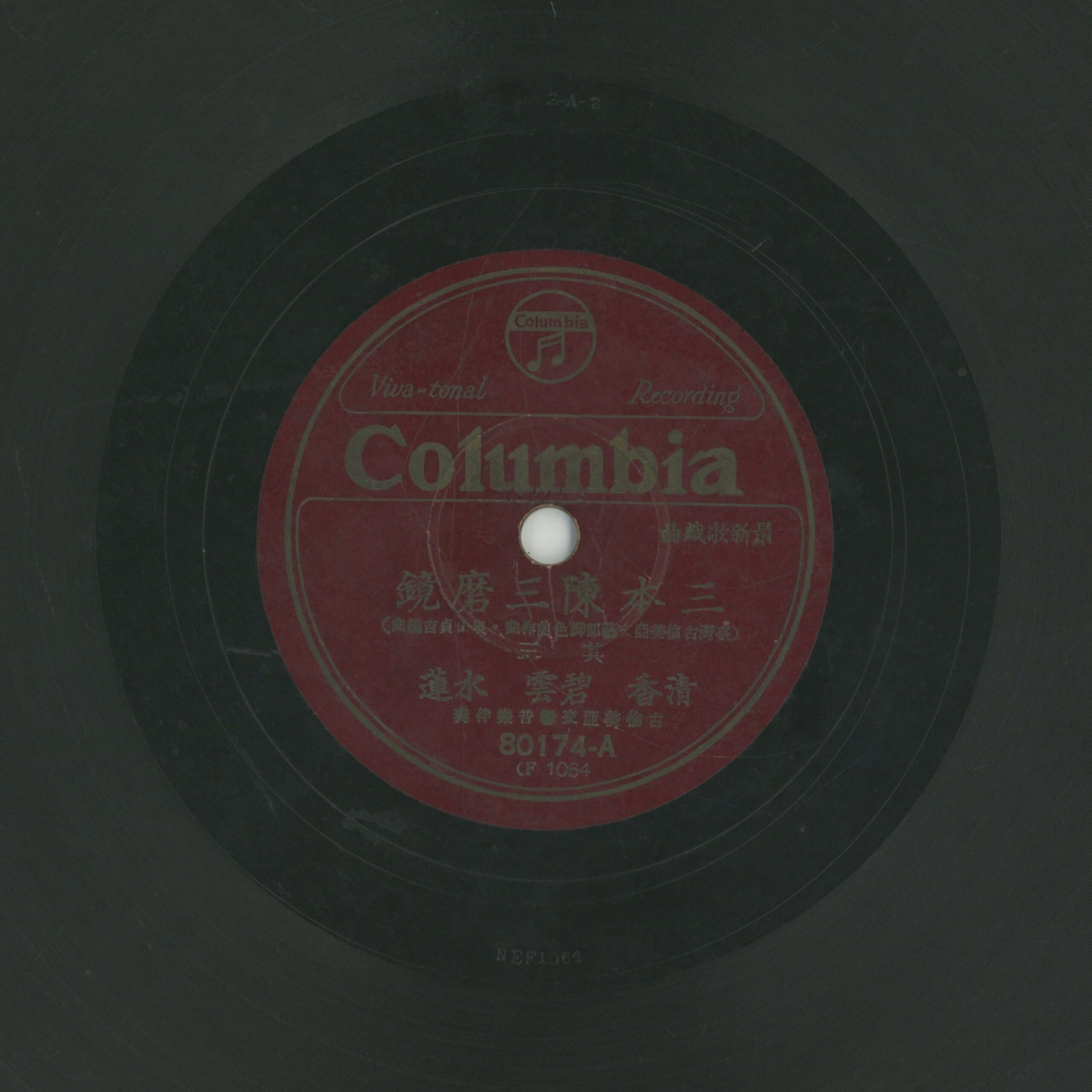 三本陳三磨鏡 (三) 演出者清香、碧雲、水蓮演唱 古倫美亞交響音樂伴奏創作者臺灣古倫美亞文藝部作曲 奧山貞吉編曲關鍵詞#歌仔戲 #陳三五娘內容全套共2片,此為第二張聲音載體留聲機唱片發行編號日蓄 (古倫美亞-臺灣)80174專輯年份《最新歌戲曲:三本陳三磨鏡》1931~32其他曲目4-三本陳三磨鏡 (四)來源專案臺史博館藏錄音發布(2026) 相關照片