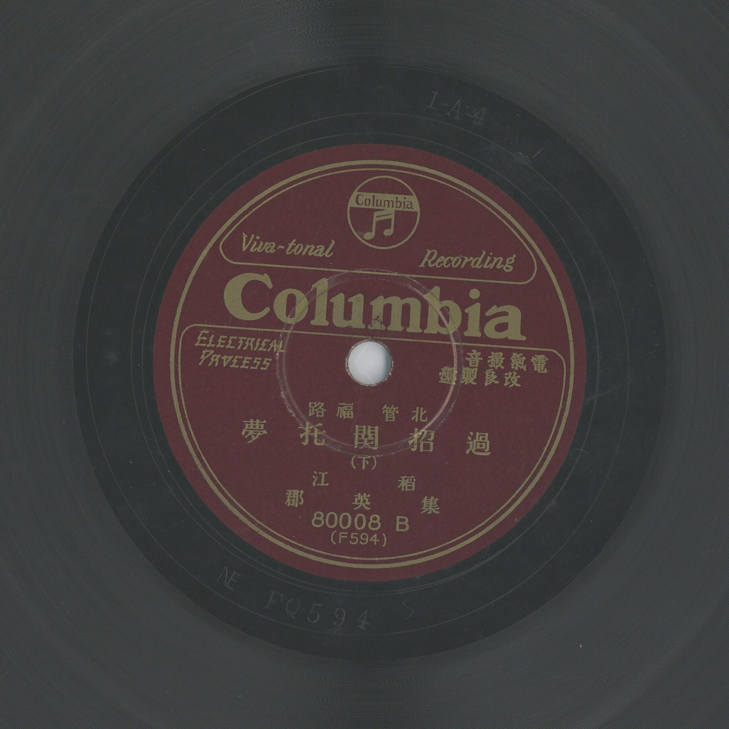 伍員過招關 (下) 演出者稻江 集英郡演唱關鍵詞#南管曲聲音載體留聲機唱片發行編號日蓄 (古倫美亞-臺灣)80008專輯年份《北管 福路:伍員過招關》1930其他曲目A-伍員過招關 (上)來源專案臺史博館藏錄音發布(2026) 相關照片