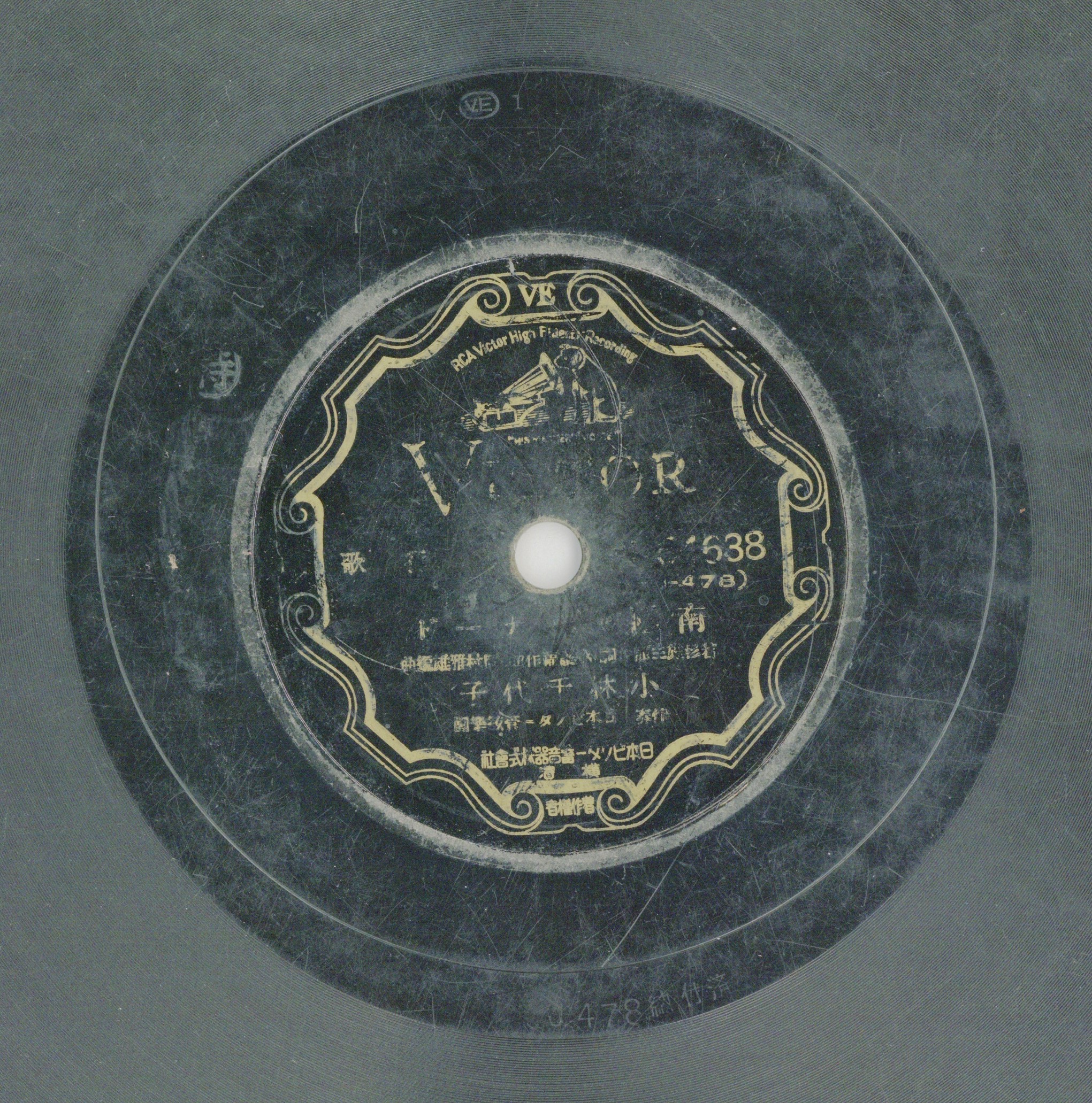 曲盤註明「橫濱日本ビクター蓄音器株式會社著作權者」字樣,是勝利唱片公司在二次大戰期間的產品。歌名「南囯セしナ-ド」即「南國小夜曲」,日語歌曲,改編自姚讚福作曲、陳達儒作詞的知名台語歌曲〈心酸酸〉,〈心酸酸〉為1935年臺灣勝利公司發行的台語歌,是相當走紅的臺灣歌曲,日文版的這首〈南國小夜曲〉編曲與原台語歌曲一致,演唱者小林千代子為知名聲樂家。