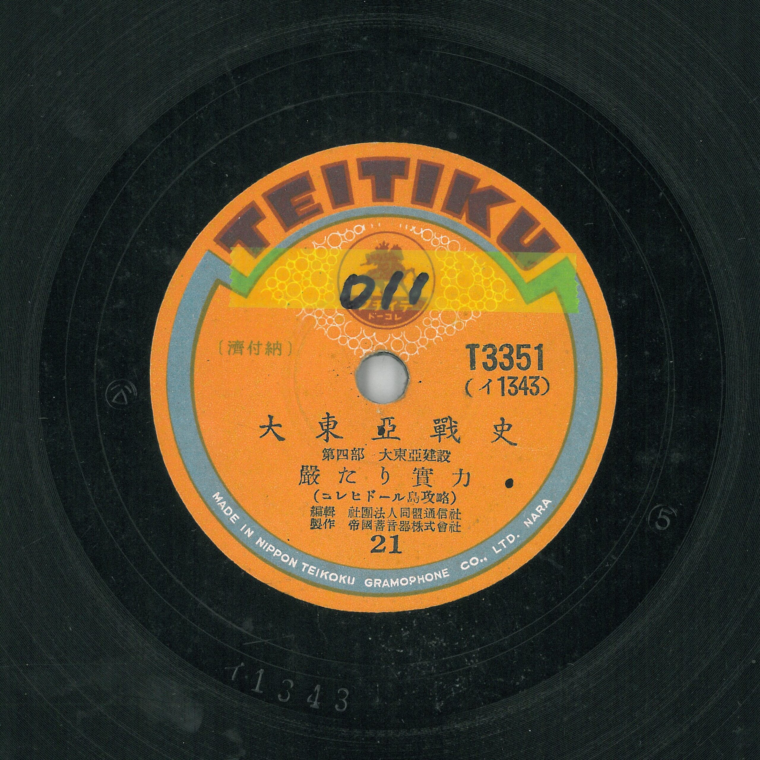 帝國蓄音器株式會社發行套裝唱片《大東亞戰史》,「社團法人同盟通信社」編輯製作,全套共12張唱片,分「民族の進擊」、「大詔渙發」、「擊滅」、「大東亞建設」4部各6集共24集。從戰爭宣傳的立場,呈現1932年滿洲國建立至1942年太平洋戰爭爆發的重要記事。