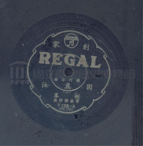 因為汝 (上) 演出者劍峰演唱、管絃樂伴奏關鍵詞#劍峰 #流行歌 #流行小曲內容管絃樂伴奏聲音載體留聲機唱片發行編號古倫美亞 (利家-黑)T128專輯年份《流行小曲:因為汝》1933-1934來源專案成大多元文化中心合作徵集 (2015) 相關照片