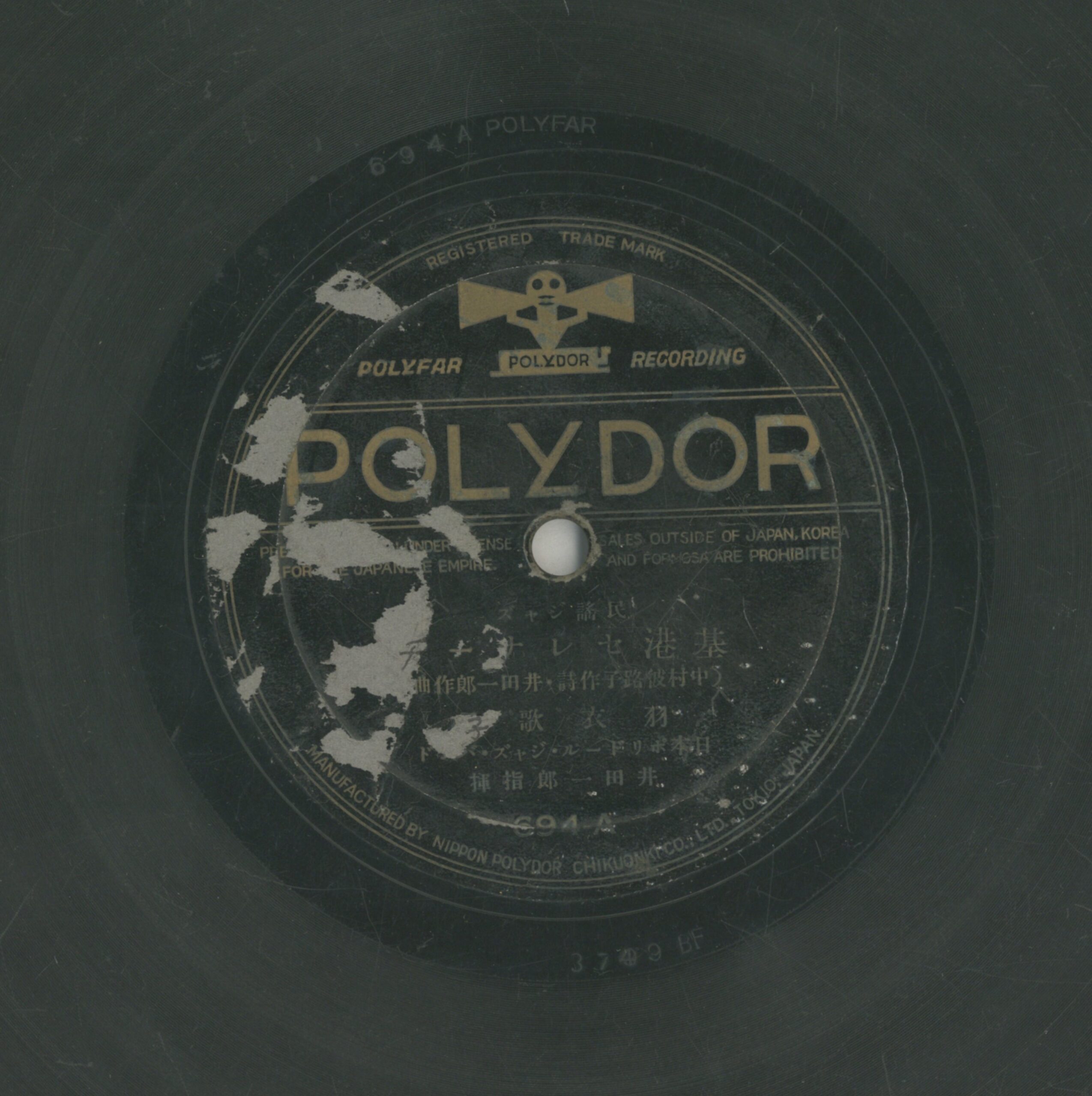 基港セレナーデ 演出者羽衣歌子演唱 日本ポリドージャズ.パンド伴奏創作者中村彼路子作詞 井田一郎作曲關鍵詞#流行歌 #臺灣新民謠內容「基港セレナーデ」(基隆小夜曲),「民謠ジャズ」指以爵士樂隊演出的民謠歌曲,指揮井田一郎。聲音載體留聲機唱片發行編號POLYDOR694專輯年份《民謠シヤス:基港セレナーデ/萬華小唄》1931其他曲目B-萬華小唄來源專案臺史博館藏錄音發布(2026) 相關照片