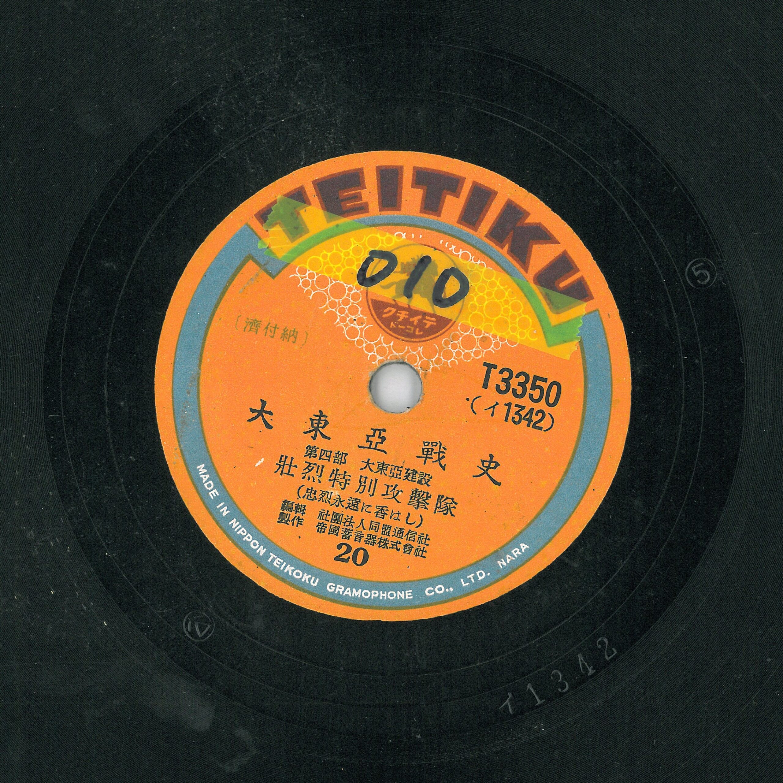 帝國蓄音器株式會社發行套裝唱片《大東亞戰史》,「社團法人同盟通信社」編輯製作,全套共12張唱片,分「民族の進擊」、「大詔渙發」、「擊滅」、「大東亞建設」4部各6集共24集。從戰爭宣傳的立場,呈現1932年滿洲國建立至1942年太平洋戰爭爆發的重要記事。