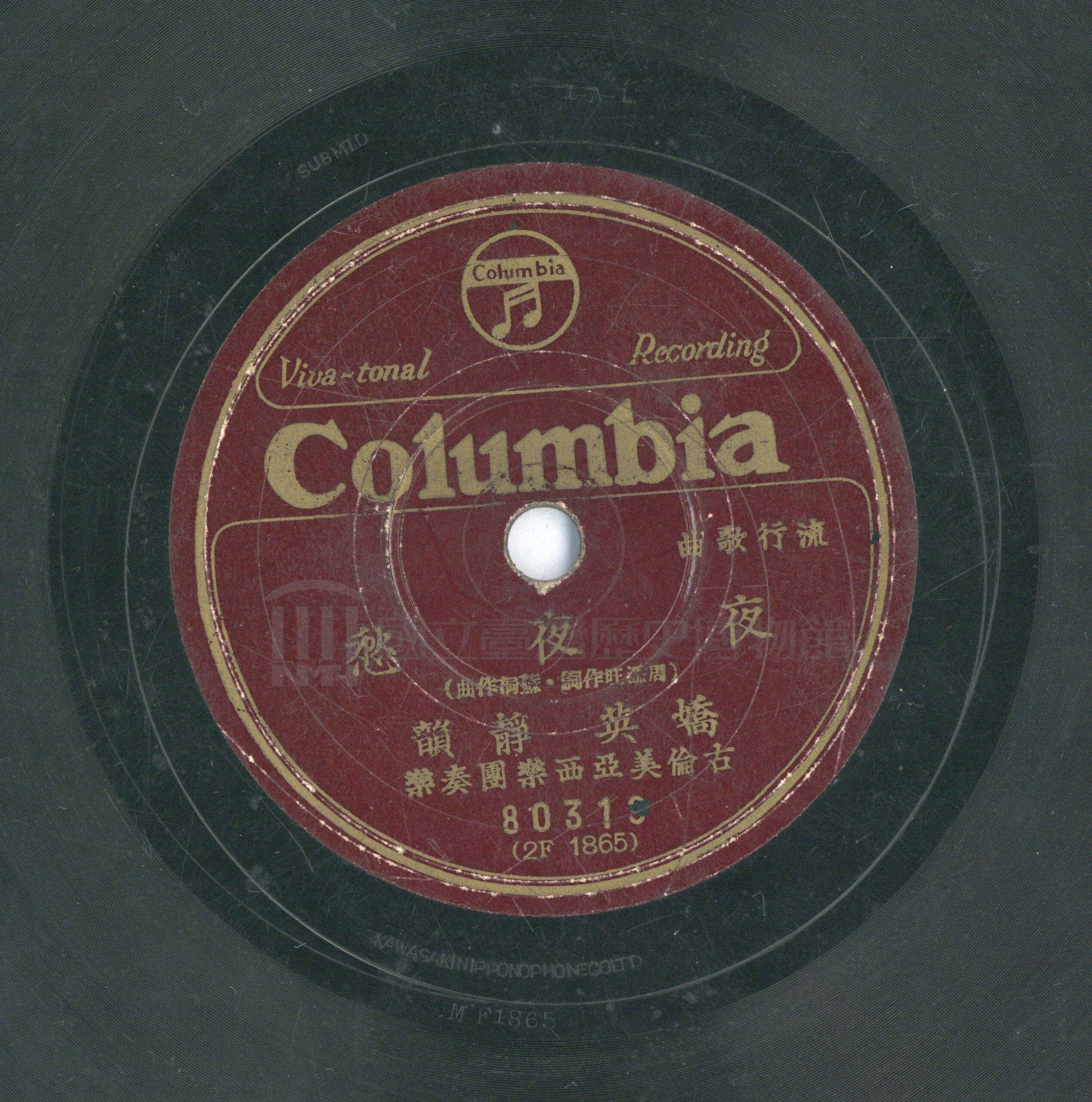 夜夜愁 演出者嬌英、靜韻演唱創作者周添旺作詞、蘇桐作曲關鍵詞#唱歌 #流行歌 #電影內容聲音載體留聲機唱片發行編號日蓄 (古倫美亞)80319專輯年份《流行歌:城市之夜、夜夜愁》1935年4月專輯資訊聯華影片『城市之夜』主題歌其他曲目曲目-城市之夜來源專案臺史博館藏錄音 (一) 含露牡丹花當紅 為著薄情伊一人 虛情假愛怨恨重 誤阮青春處女欉 (二) 花蕊受人折了離 難得回復青春期 恨情目屎也免滴 不勉自嘆暗傷悲 相關照片