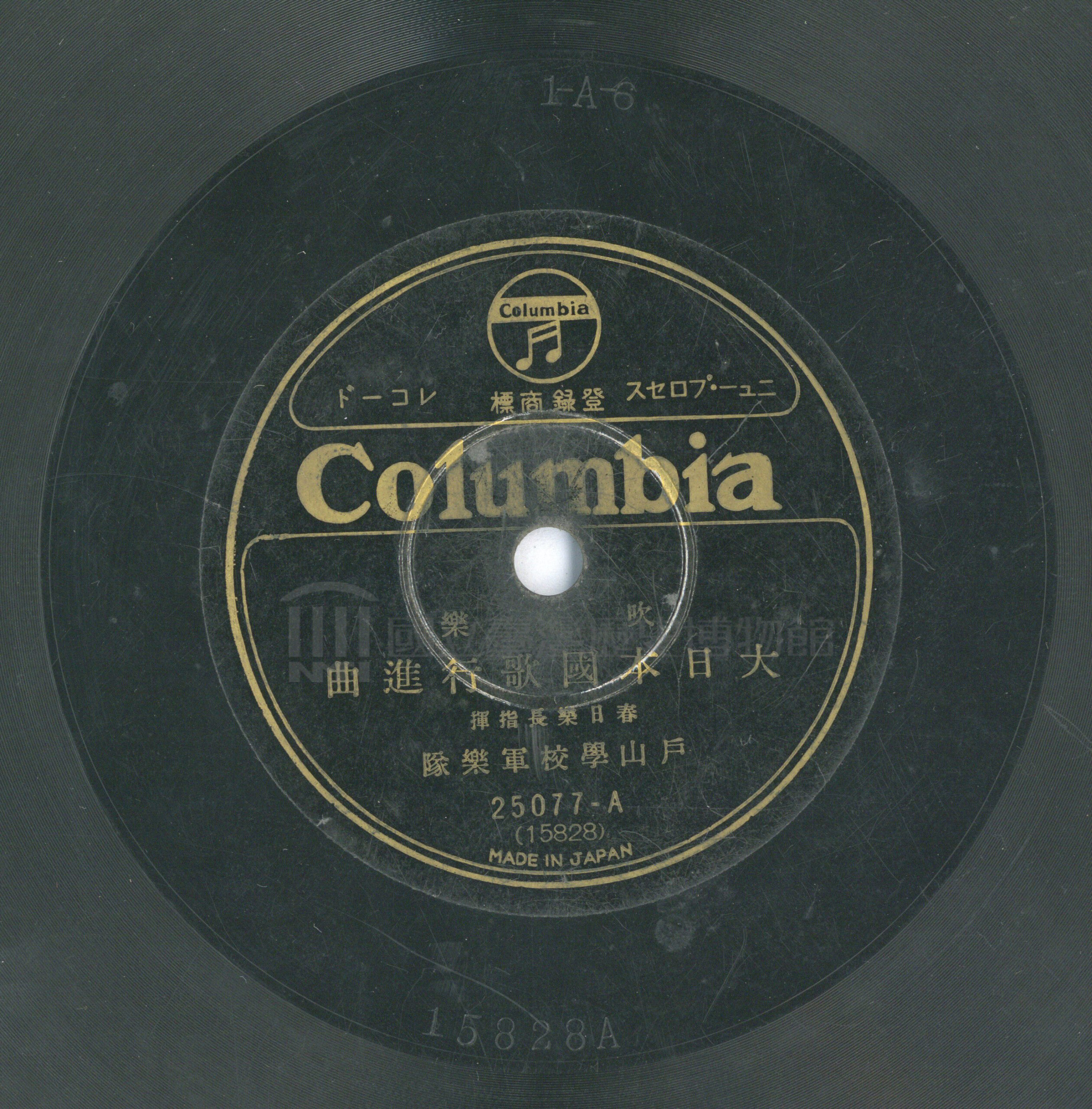 大日本國歌行進曲 關鍵詞#進行 #軍歌 #吹奏樂內容春日樂長 指揮聲音載體留聲機唱片發行編號日本コロムビア (古倫美亞)25077專輯年份《吹奏樂:大日本國歌行進曲、軍艦行進曲》1935其他曲目曲目-軍艦行進曲來源專案臺史博館藏錄音 相關照片