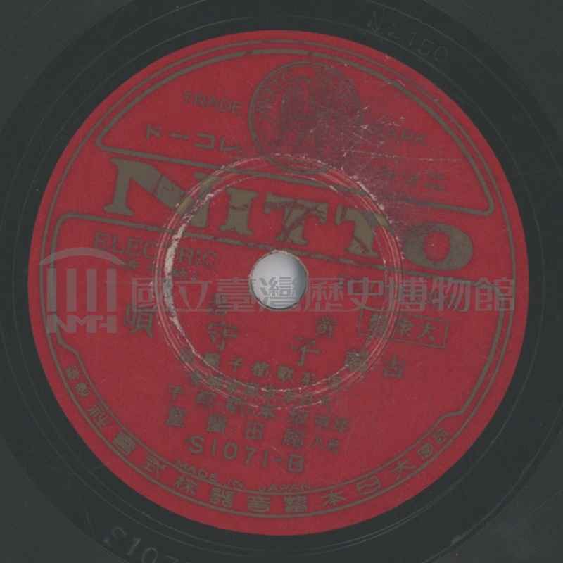子守唄 (古謠) 演出者大日本家庭音樂會、坂本歌都子演唱關鍵詞#日本傳統音樂 #古箏內容唱片圓標標註「大眾盤」。 坂本歌都子即為築紫歌都子,築紫會創辦人。聲音載體留聲機唱片發行編號日東S1071專輯年份《古謠:花嫁人形、子守唄》1938其他曲目曲目-花嫁人形來源專案臺史博館藏錄音 相關照片
