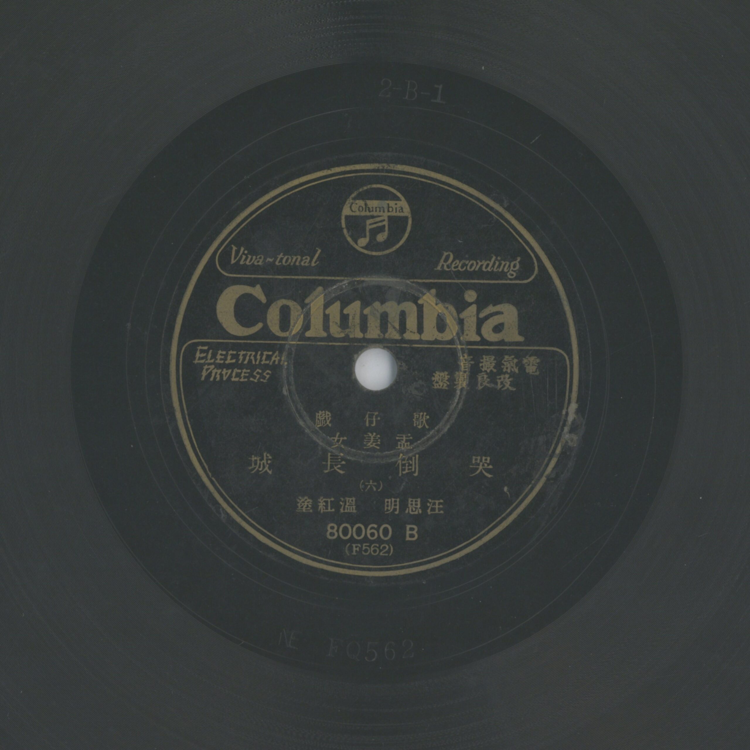 孟姜女哭倒長城 (六) 演出者溫紅塗、汪思明演唱關鍵詞#歌仔戲 #孟姜女內容全套共3片,此為第三張聲音載體留聲機唱片發行編號日蓄 (古倫美亞-臺灣)80060專輯年份《歌仔戲:孟姜女哭倒長城》1930其他曲目1-孟姜女哭倒長城 (一) 2-孟姜女哭倒長城 (二) 3-孟姜女哭倒長城 (三) 4-孟姜女哭倒長城 (四) 5-孟姜女哭倒長城 (五)來源專案臺史博館藏錄音發布(2026) 相關照片