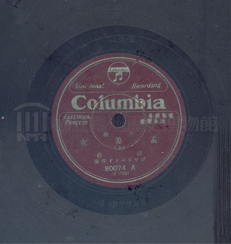 孟姜女 (上) 關鍵詞#流行小曲內容據錄音資料為1930年5月在東京日蓄公司的錄音室錄音。註明為ジヤズオーケストラ (爵士樂團)伴奏。聲音載體留聲機唱片發行編號日蓄 (古倫美亞)80074專輯年份《流行小曲:孟姜女》1930來源專案成大多元文化中心合作徵集 (2015) 相關照片