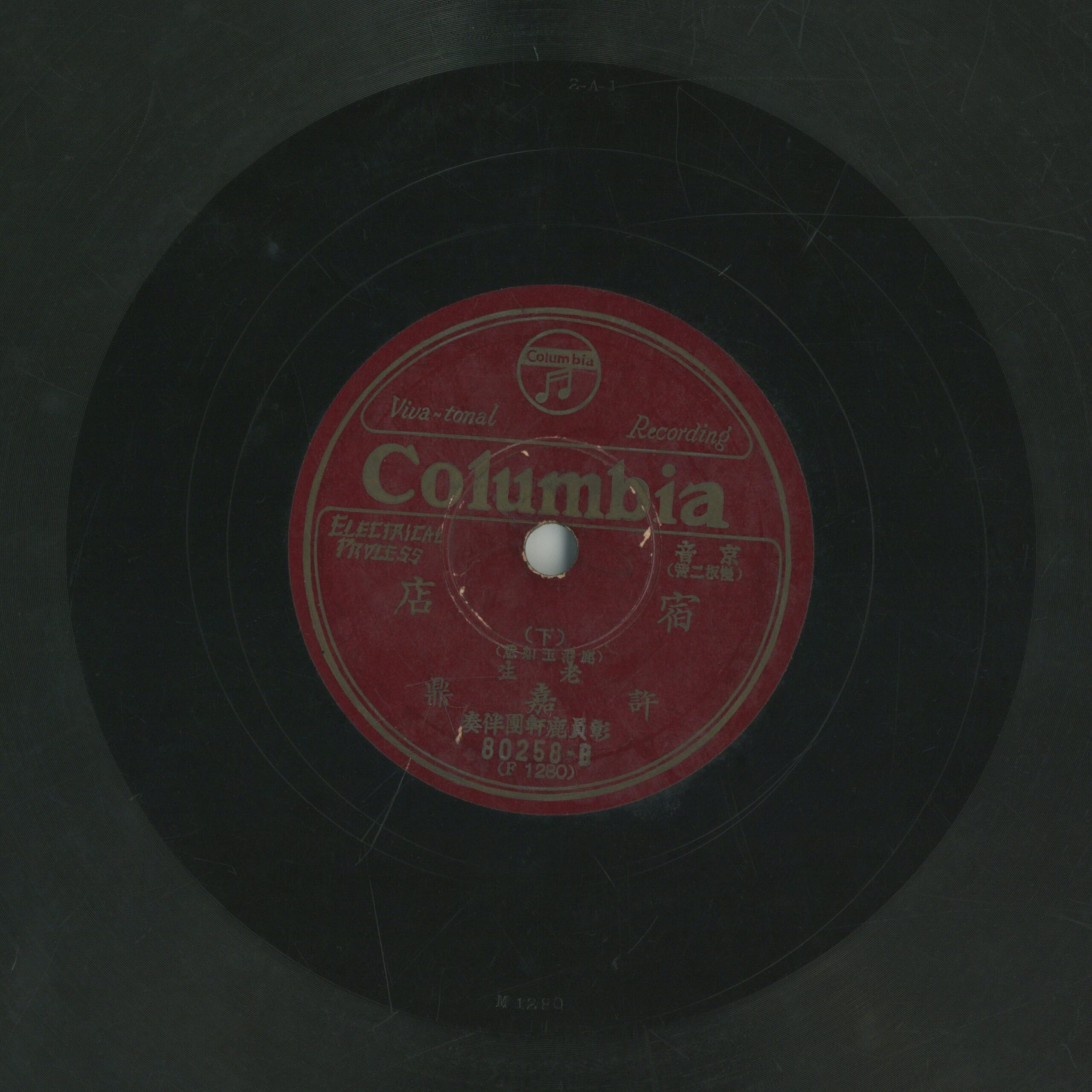 宿店 (下) 演出者老生:許嘉鼎 (鹿港玉如意)演唱 彰員鹿軒團伴奏關鍵詞#京劇 #正音 #二簧內容京音 (慢板二簧)聲音載體留聲機唱片發行編號日蓄 (古倫美亞-臺灣)80258專輯年份《京音(慢板二簧):宿店》1932~1933其他曲目A-宿店 (上)來源專案臺史博館藏錄音發布(2026) 相關照片