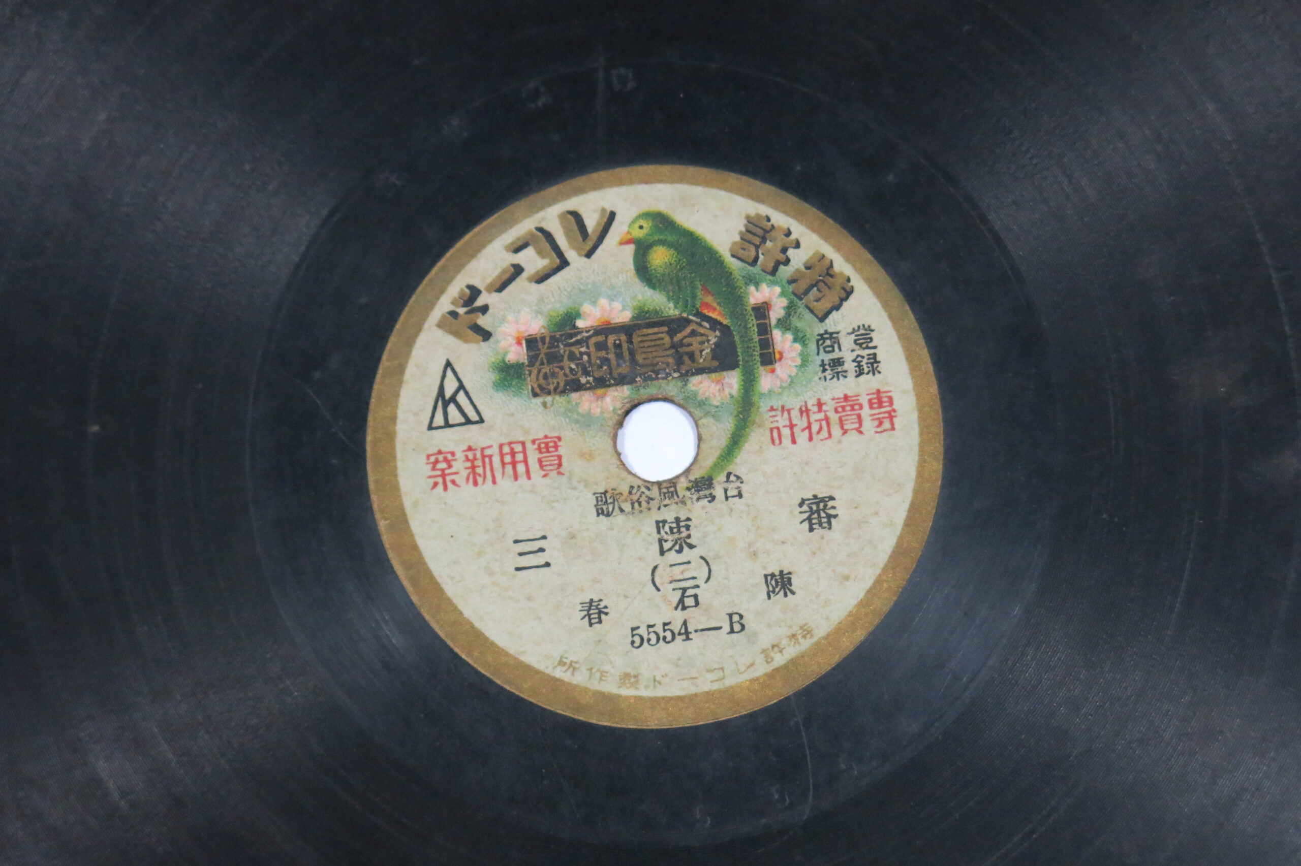 審陳三 (二) 演出者陳石春演唱關鍵詞#小曲 #歌仔 #七字仔 #陳三五娘內容所謂「台灣風俗歌」指唱曲用台灣本地歌仔常用的調,也就是現在所謂的「七字仔調」、「江湖調」或說是「賣藥仔調」。聲音載體留聲機唱片發行編號特許 (金鳥)5554專輯年份《臺灣風俗歌:審陳三》1926-1929專輯資訊本文物為蟲膠鋪面唱片,上有金鳥印的商標,其普及的年代為1925年,當時每片只買3.5角。其他曲目1-審陳三 (一) 3-審陳三 (三) 4-審陳三 (四)來源專案臺史博館藏錄音發布(2026) 相關照片