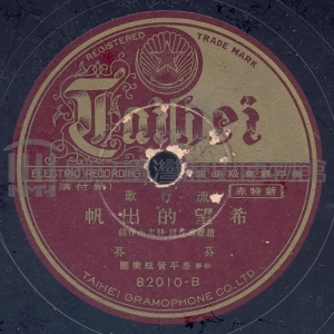 希望的出帆 演出者芬芬演唱、泰平管絃樂團伴奏創作者趙櫪馬作詞、林木水作曲關鍵詞#唱歌 #流行歌內容鄭有忠泰平管絃樂團聲音載體留聲機唱片發行編號泰平82010專輯年份《流行歌:月下愁、希望的出帆》12782其他曲目曲目-月下愁來源專案收藏家曲盤授權提供 (2016) 相關照片