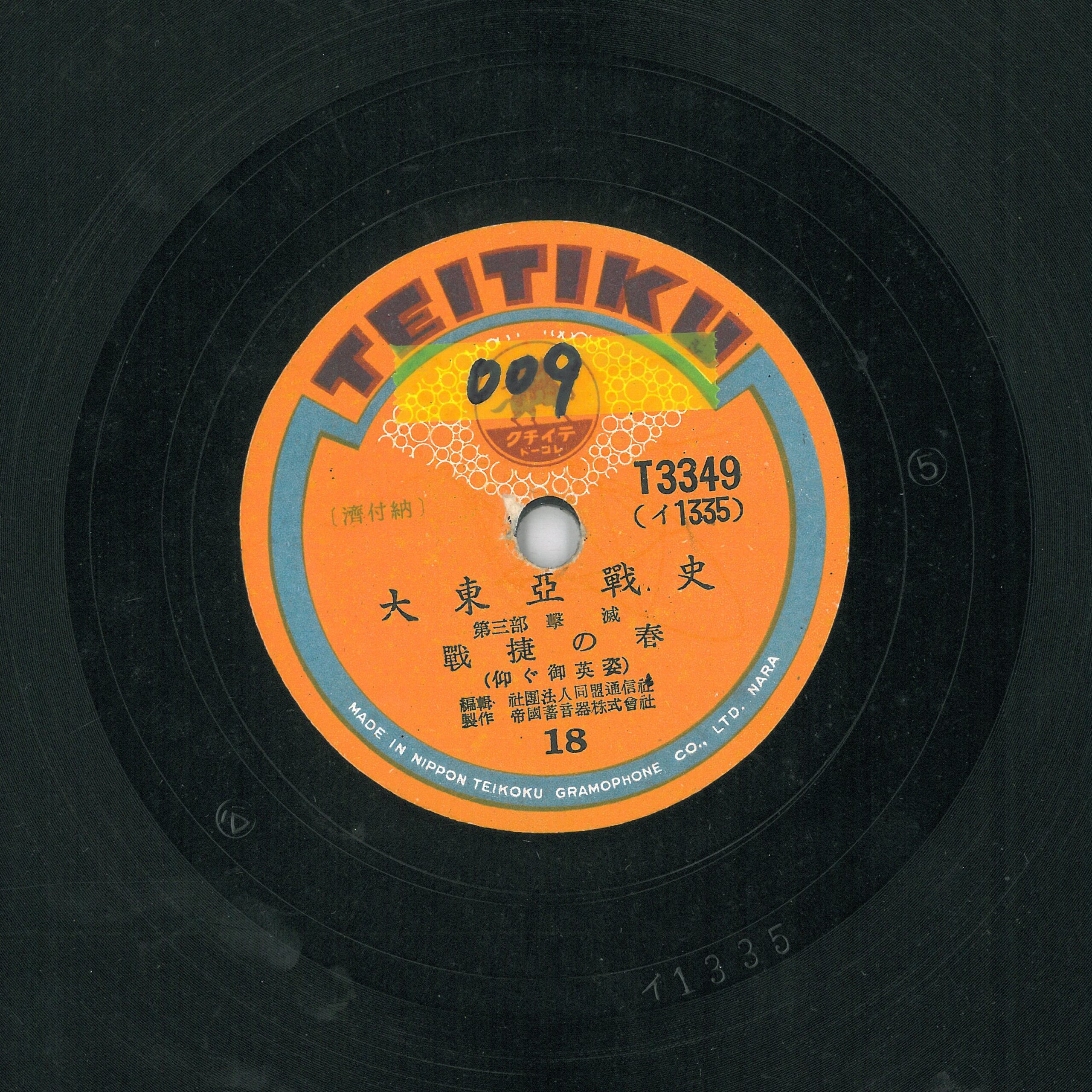 帝國蓄音器株式會社發行套裝唱片《大東亞戰史》,「社團法人同盟通信社」編輯製作,全套共12張唱片,分「民族の進擊」、「大詔渙發」、「擊滅」、「大東亞建設」4部各6集共24集。從戰爭宣傳的立場,呈現1932年滿洲國建立至1942年太平洋戰爭爆發的重要記事。