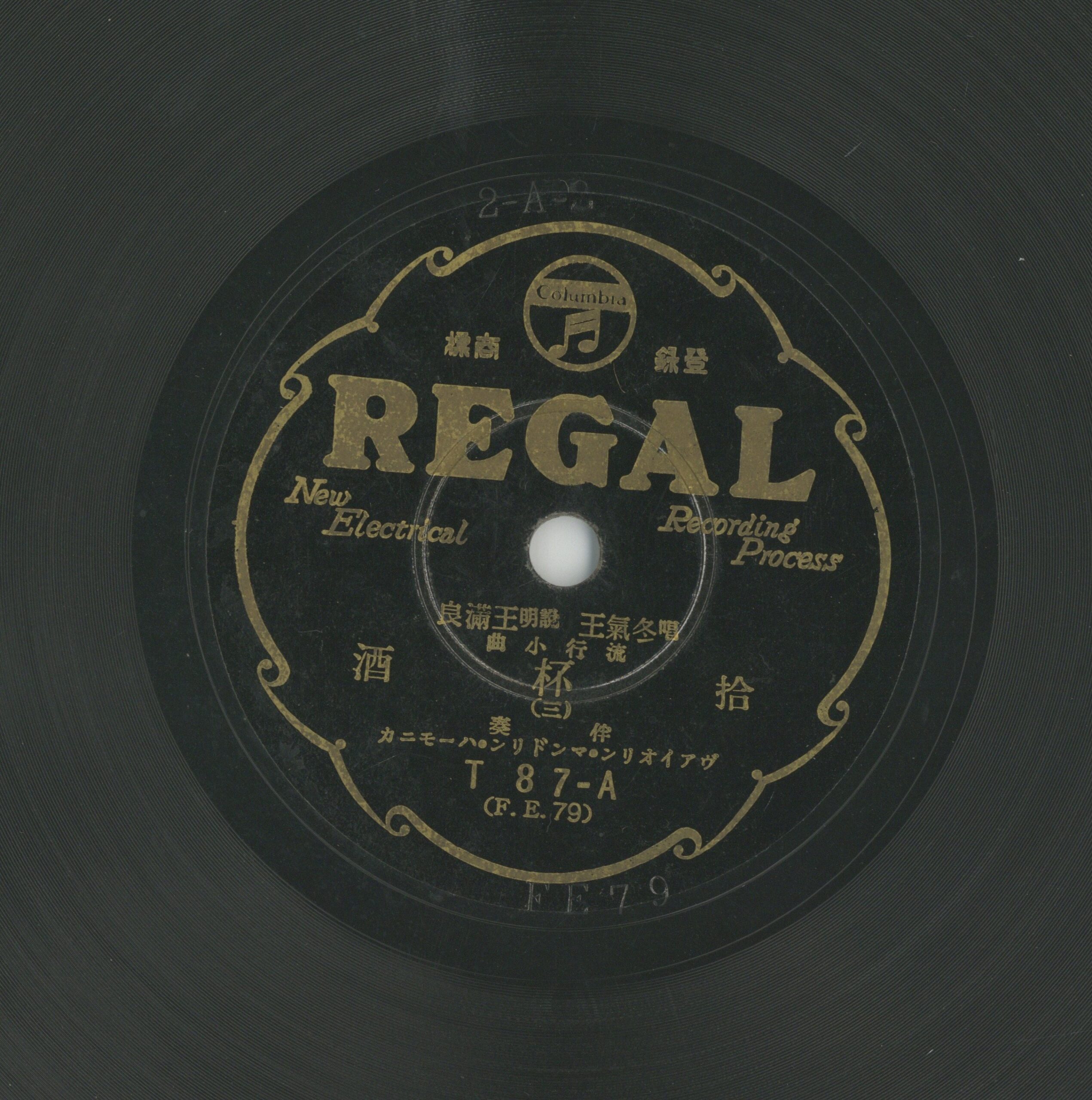 拾酒杯 (三) 演出者冬氣王、說明 王滿良演唱 ヴ アイオリン•マンドリン•ハ─モニカ伴奏關鍵詞#流行歌 #小曲內容錄音(母盤)編號為F.E.79。”ヴ アイオリン•マンドリン•ハ─モニカ “指樂器有小提琴、曼陀林、口琴。聲音載體留聲機唱片發行編號古倫美亞 (利家-黑)T87專輯年份《流行小曲:拾酒杯》1931錄音;1933~34出版其他曲目4-拾酒杯 (四)來源專案臺史博館藏錄音發布(2026) 相關照片