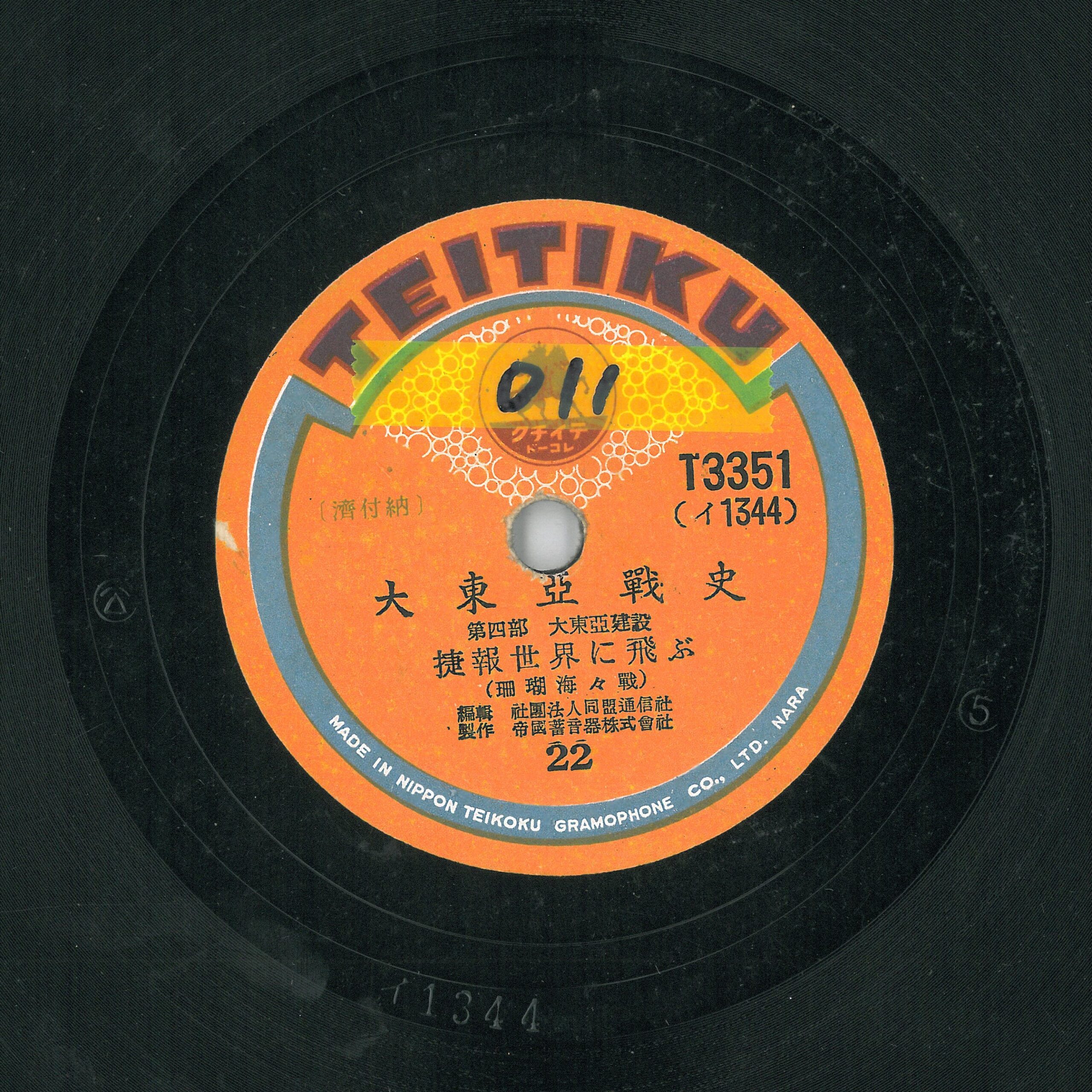 帝國蓄音器株式會社發行套裝唱片《大東亞戰史》,「社團法人同盟通信社」編輯製作,全套共12張唱片,分「民族の進擊」、「大詔渙發」、「擊滅」、「大東亞建設」4部各6集共24集。從戰爭宣傳的立場,呈現1932年滿洲國建立至1942年太平洋戰爭爆發的重要記事。