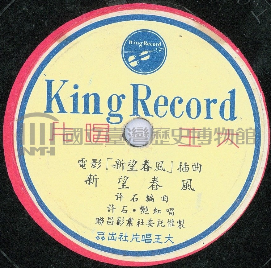 新望春風 演出者許石、艷紅演唱關鍵詞#唱歌 #流行歌 #電影內容電影新望春風插曲,以日治時期流行歌〈望春風〉改編,加上第三段歌詞讓故事有美好結局。聲音載體留聲機唱片發行編號大王 (King)專輯年份《台灣歌曲:新望春風、憶親情》1954~1957專輯資訊聯昌影業委託灌製,許石編曲,大王唱片管弦樂團伴奏。其他曲目曲目-憶親情來源專案許石生平研究案(2019) 相關照片