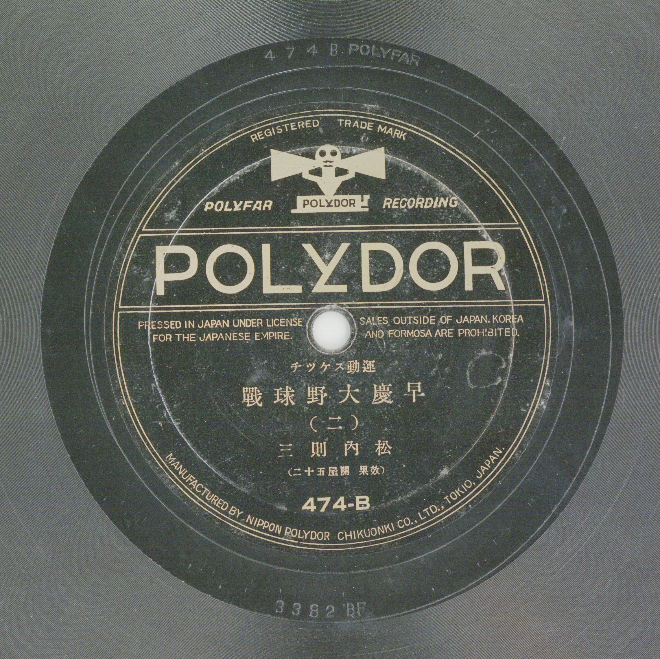 本套唱片為針對早慶站的棒球錄音,主題是運動寫生 (skech)。播報者松內則三是1920到30年代日本放送協會 (NHK)知名體育主播,當時並未有錄音剪接技術,是依戰況紀錄重新配音,但據說唱片賣得很好,而建立體育播報唱片的市場。