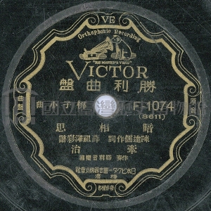 暗相思 演出者牽治演唱、勝利音樂團伴奏創作者陳達儒作詞、薛祖澤(採譜)作曲關鍵詞#唱歌 #流行歌 #小曲內容聲音載體留聲機唱片發行編號勝利F1074專輯年份《流行小曲/梆子小曲:柳樹影、暗相思》1936其他曲目曲目-柳樹影來源專案收藏家曲盤授權提供 (2016) 相關照片