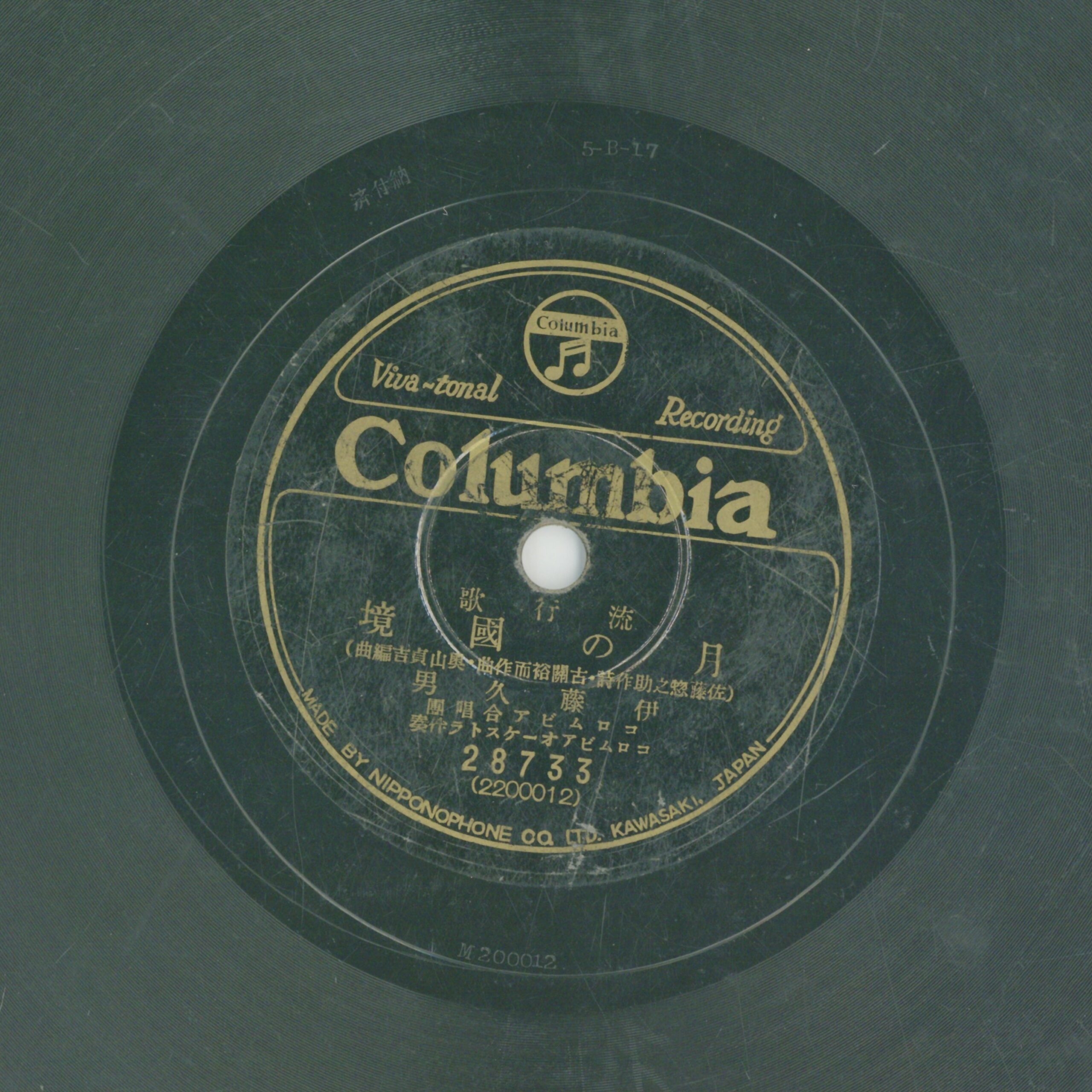 月の國境 演出者伊藤久男演唱 コロムビアーケストラ伴奏創作者佐藤惣之助作詞 古關裕而作曲 奧山貞吉編曲關鍵詞#流行歌 #滿洲國 #戰爭時局聲音載體留聲機唱片發行編號日蓄 (古倫美亞)28733專輯年份《流行歌:滿洲想へば/月の國境》1936其他曲目A-滿洲想へば來源專案臺史博館藏錄音發布(2026) 相關照片