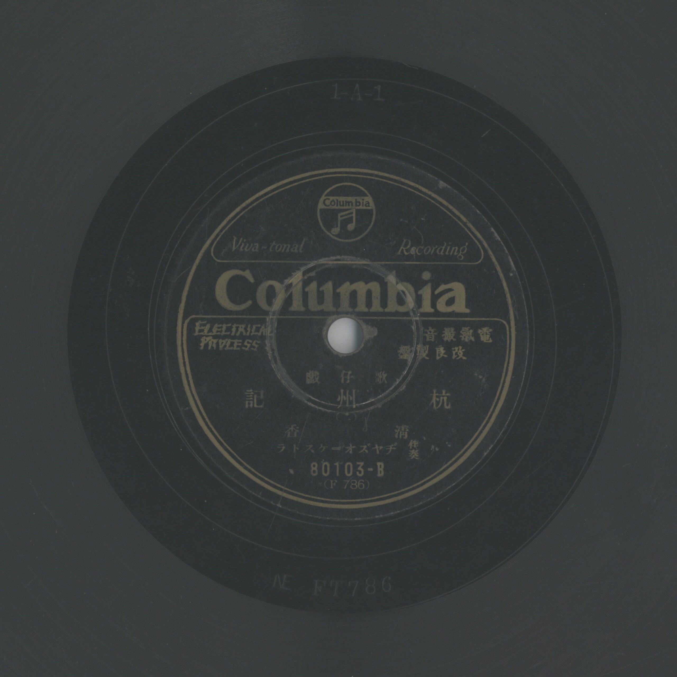 杭州記 (二) 演出者清香演唱 ヂヤズオーケストラ(爵士交響樂團)伴奏關鍵詞#歌仔戲內容爵士樂團伴奏的歌仔戲曲,由歌手清香(劉清香,即歌手純純)演唱。聲音載體留聲機唱片發行編號日蓄 (古倫美亞-臺灣)80103專輯年份《歌仔戲:杭州記》1930~31其他曲目1-杭州記 (一) 3-杭州記 (三) 4-杭州記 (四) 5-杭州記 (五) 6-杭州記 (六)來源專案臺史博館藏錄音發布(2026) 相關照片