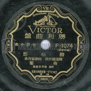 柳樹影 演出者秀鑾演唱、勝利音樂團伴奏創作者陳達儒作詞、陳秋霖作曲關鍵詞#唱歌 #流行歌 #小曲內容聲音載體留聲機唱片發行編號勝利F1074專輯年份《流行小曲/梆子小曲:柳樹影、暗相思》1936其他曲目曲目-暗相思來源專案收藏家曲盤授權提供 (2016) 相關照片