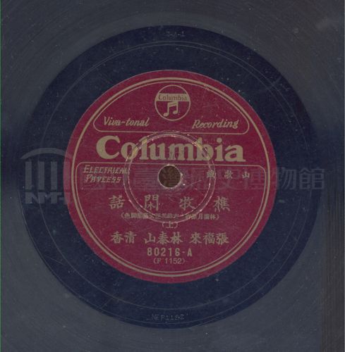樵牧閒話 (上) 演出者張福來、林泰山、清香演唱創作者古倫美亞文藝部作詞、古倫美亞文藝部作曲關鍵詞#戲曲 #喜劇笑話內容聲音載體留聲機唱片發行編號日蓄 (古倫美亞)80216專輯年份《笑劇:樵牧閒話》1933來源專案成大多元文化中心合作徵集 (2015) 相關照片