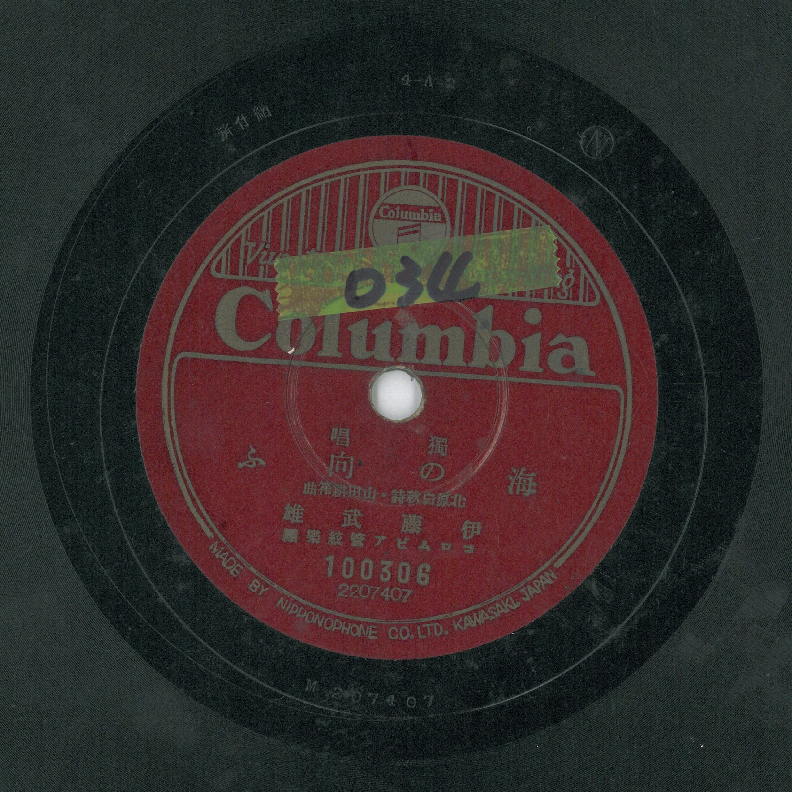 海の向ふ 演出者伊藤武雄演唱 コロムビア管絃樂團伴奏創作者北原白秋作詞 山田耕筰作曲關鍵詞#唱歌 #軍歌 #戰爭聲音載體留聲機唱片發行編號日蓄 (古倫美亞)100306專輯年份《獨唱:松島音頭/海の向ふ》1941其他曲目A-松島音頭來源專案吳三連中心寄存(2015) 相關照片