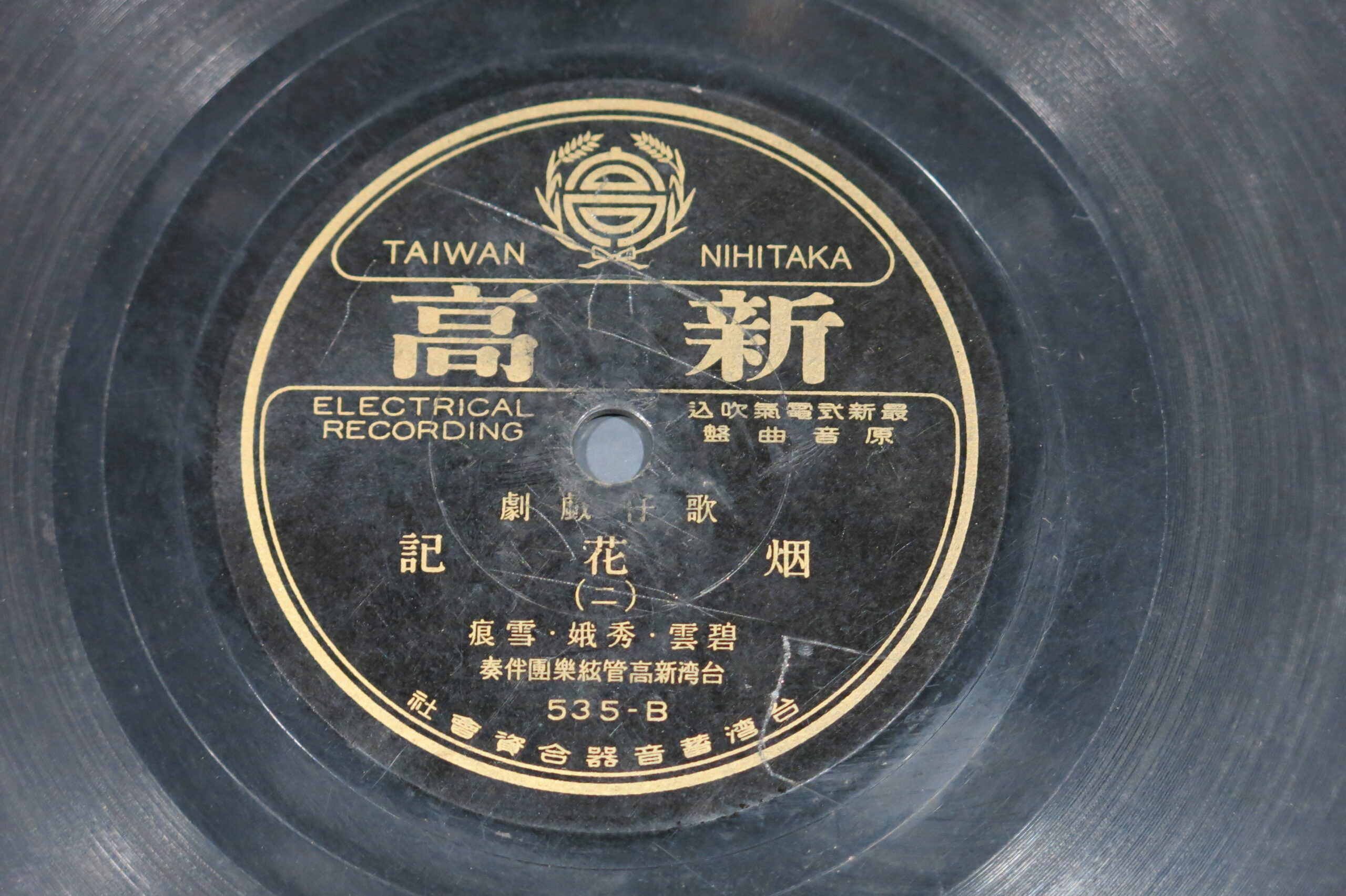 烟花記 (二) 演出者碧雲、秀娥、雪痕演唱 台灣新高管弦樂團伴奏關鍵詞#歌仔戲聲音載體留聲機唱片發行編號新高535專輯年份《歌仔戲劇:烟花記》1934~35專輯資訊臺灣蓄音器合資會社其他曲目1-烟花記 (一)來源專案臺史博館藏錄音發布(2026) 相關照片