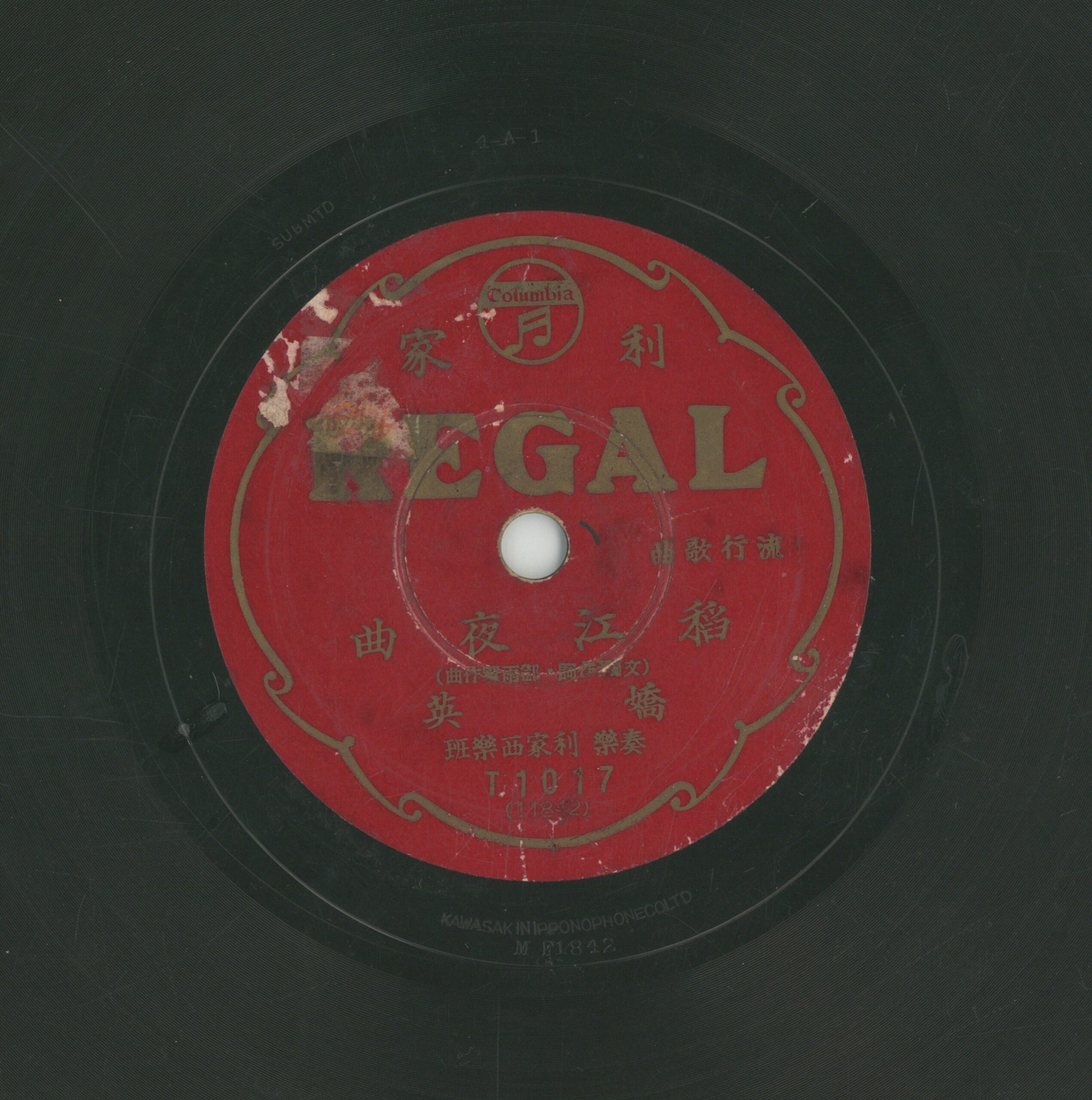 稻江夜曲 演出者嬌英演唱 利家西樂班伴奏創作者文瀾作詞 鄧雨賢作曲關鍵詞#流行歌聲音載體留聲機唱片發行編號古倫美亞 (利家-紅)T1017專輯年份《流行歌曲:四月薔薇/稻江夜曲》1935其他曲目A-四月薔薇來源專案臺史博館藏錄音發布(2026) 相關照片