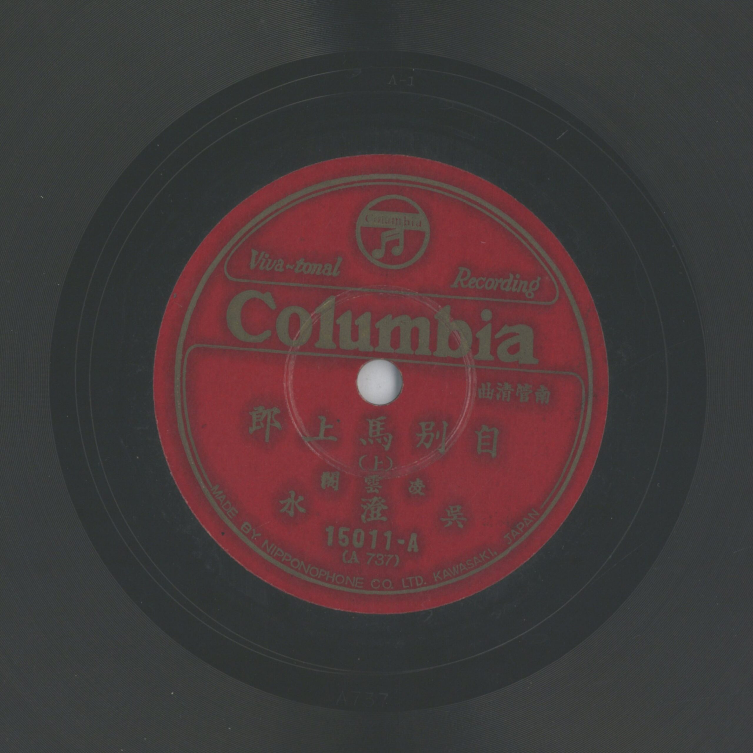 自別馬上郎 (上) 演出者凌雲閣 吳澄水演唱關鍵詞#南管 #清曲內容廈門著名儒家唱,母盤編號A.737。聲音載體留聲機唱片發行編號日蓄 (古倫美亞)15011其他曲目B-自別馬上郎 (下)來源專案臺史博館藏錄音發布(2026) 相關照片