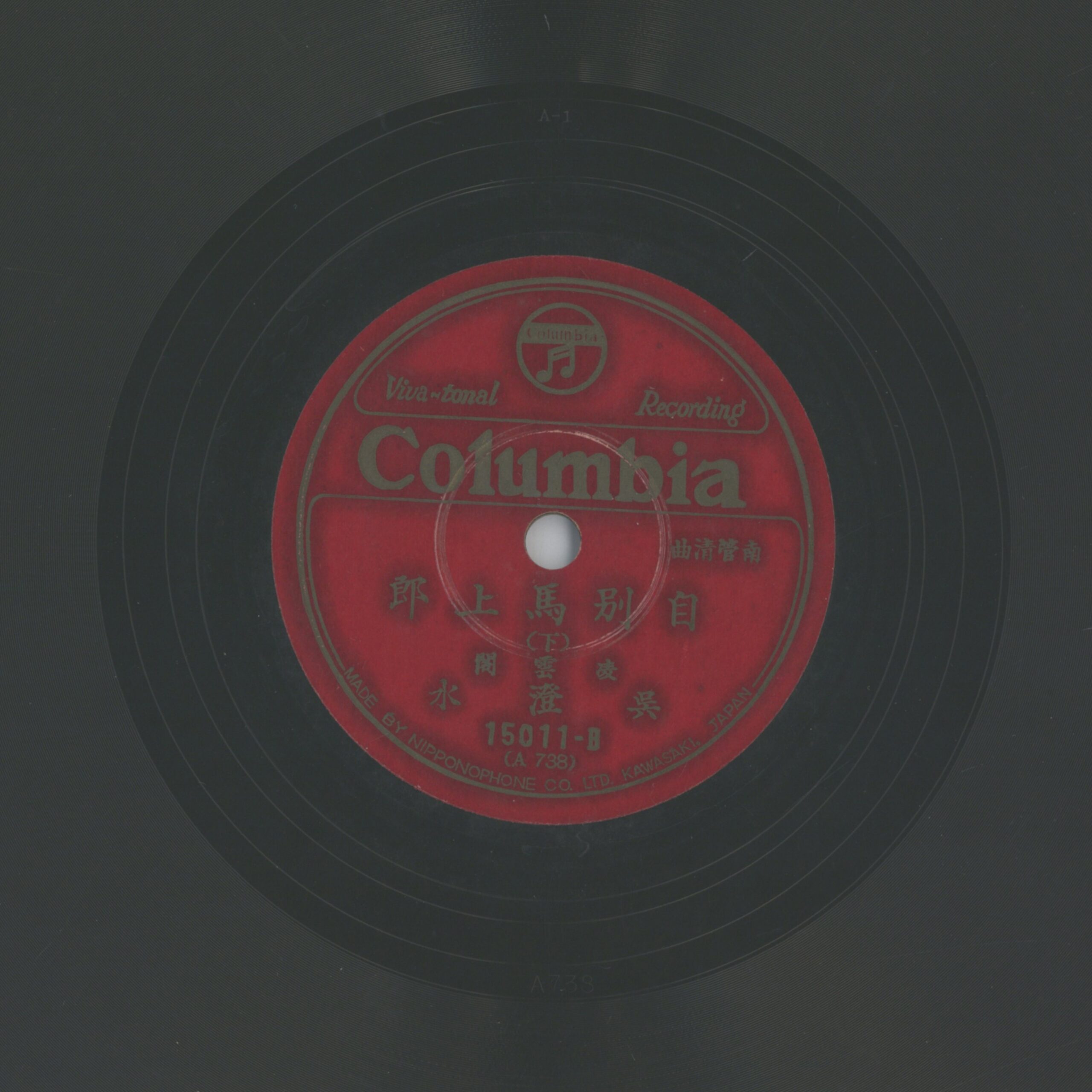 自別馬上郎 (下) 演出者凌雲閣 吳澄水演唱關鍵詞#南管 #清曲內容廈門著名儒家唱,母盤編號A.738。聲音載體留聲機唱片發行編號日蓄 (古倫美亞)15011其他曲目A-自別馬上郎 (上)來源專案臺史博館藏錄音發布(2026) 相關照片