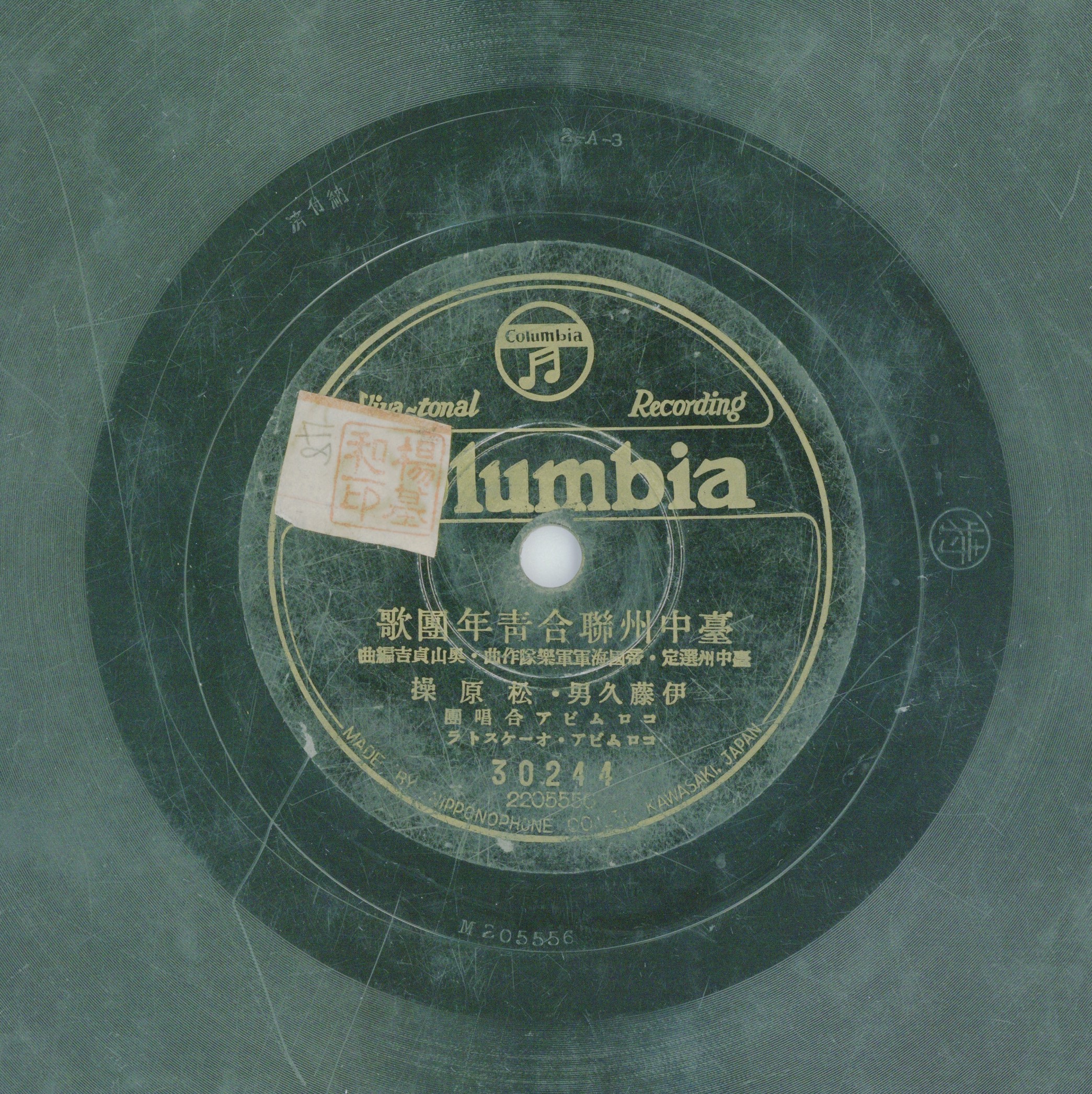 臺中州聯合青年團歌 演出者伊藤久男、松原操演唱 コロムビア合唱團伴奏創作者帝國海軍軍樂隊作曲 奧山貞吉編曲關鍵詞#新民謠 #地方歌謠聲音載體留聲機唱片發行編號日蓄 (古倫美亞)30244專輯年份《臺中州選定:臺中州歌/臺中州聯合青年團歌》1939其他曲目A-臺中州歌來源專案臺史博館藏錄音發布(2026) 相關照片