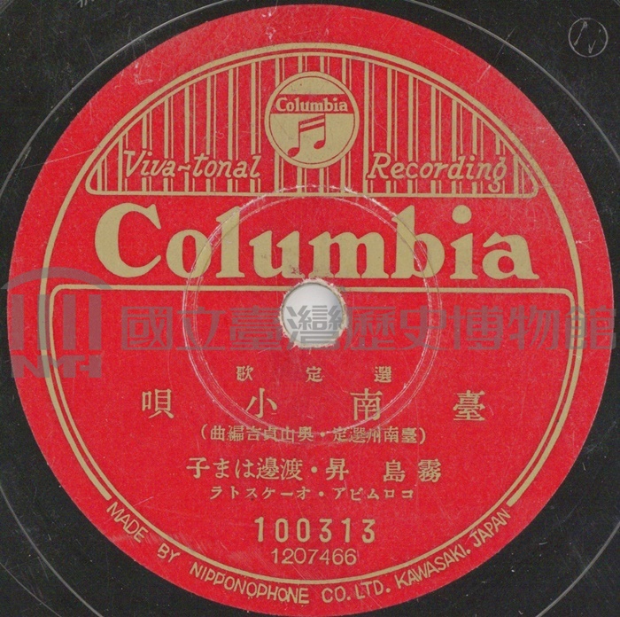 臺南小唄 演出者霧島昇、渡邊はる子演唱創作者臺南州撰定作詞、臺南州撰定作曲關鍵詞#節慶歌謠 #創作民謠 #地方歌謠 #台南內容日本統治時期地方政府募集的日語歌謠,經官方及日本民間機構宣傳。聲音載體留聲機唱片發行編號日本コロムビア (古倫美亞)100313專輯年份《新民謠:嘉南小呗》1941其他曲目曲目-台南音頭來源專案臺史博館藏錄音 相關照片