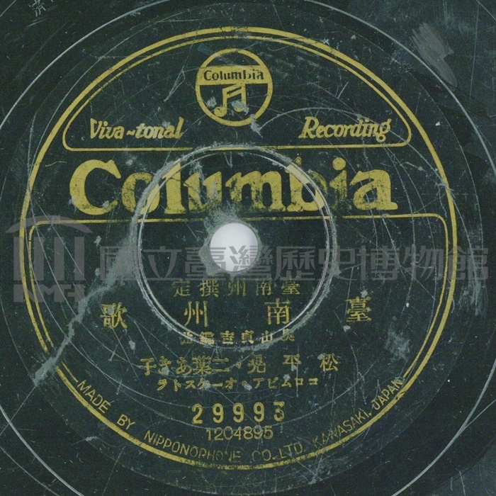 臺南州歌 演出者松平晃、二葉あき子演唱關鍵詞#州歌 #台南內容奧山貞吉編曲聲音載體留聲機唱片發行編號日本コロムビア (古倫美亞)29993專輯年份《臺南州選定歌曲:臺南州歌、臺南州行進曲》1938其他曲目曲目-臺南州行進曲來源專案臺史博館藏錄音 相關照片