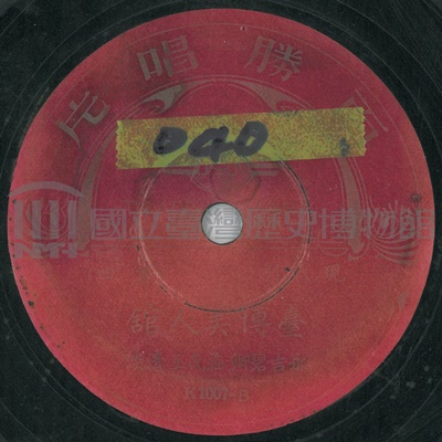 臺博美人館 (其四) 演出者永吉、碧卿、莊氏玉、清淡演唱關鍵詞#戲曲 #喜劇笑話 #臺灣大博覽會內容整個故事有4段錄音,本集為第4段。整齣的故事為一對不事生產的夫妻,利用臺灣博覽會搭訕遊客,帶回家詐騙人的故事。當中有由上博覽會文化館、國防館等的情節。 此段大意為男性把皮箱交給女性,兩人門一關,先生一聽關門聲就衝進來抓姦,百般兇惡嗆聲,開口就要幾千塊錢…聲音載體留聲機唱片發行編號百勝K1007專輯年份《笑科:臺博美人館》1935專輯資訊共兩張唱片,分別為上下集,演出形式為唱唱唸唸的新劇,整齣故事為一對不事生產的夫妻,利用臺灣博覽會搭訕遊客,帶回家詐騙人的故事。來源專案吳三連基金會合作徵集 (2015) 相關照片