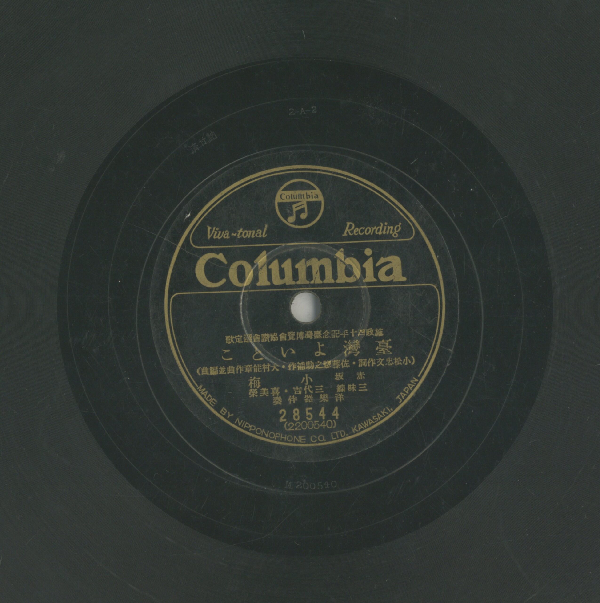 臺灣よいとこ 演出者赤坂 小梅演唱 コロムビア‧オーケストラ伴奏創作者小松忠文、佐藤惣之助補作作詞 大村能章作曲 大村能章編曲關鍵詞#流行歌 #戰爭時局內容補作:佐藤惣之助;赤坂:小梅;三味線:三代吉、喜美榮聲音載體留聲機唱片發行編號日蓄 (古倫美亞)28544專輯年份《施政四十年紀念臺灣博覽會協讚會選定歌》1935其他曲目A-躍進臺灣來源專案臺史博館藏錄音發布(2026) 相關照片