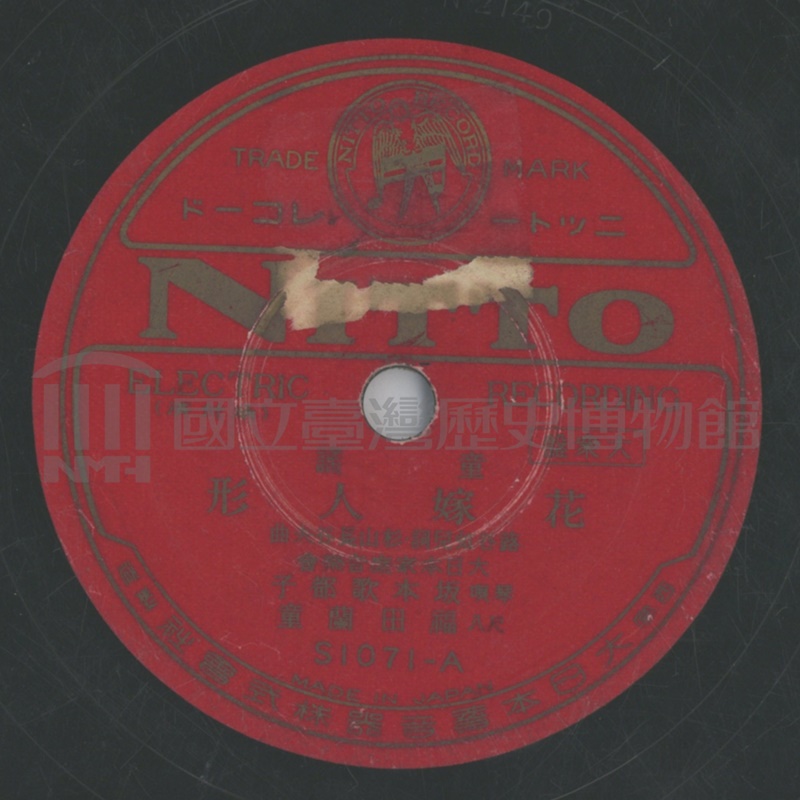 花嫁人形 演出者大日本家庭音樂會、坂本歌都子演唱創作者蕗谷虹兒作詞、杉山長谷夫作曲關鍵詞#童謠 #兒歌內容唱片圓標標註「大眾盤」。琴唄:坂本歌都子 尺八:福田蘭童聲音載體留聲機唱片發行編號日東S1071專輯年份《古謠:花嫁人形、子守唄》1938其他曲目曲目-子守唄 (古謠)來源專案臺史博館藏錄音 相關照片
