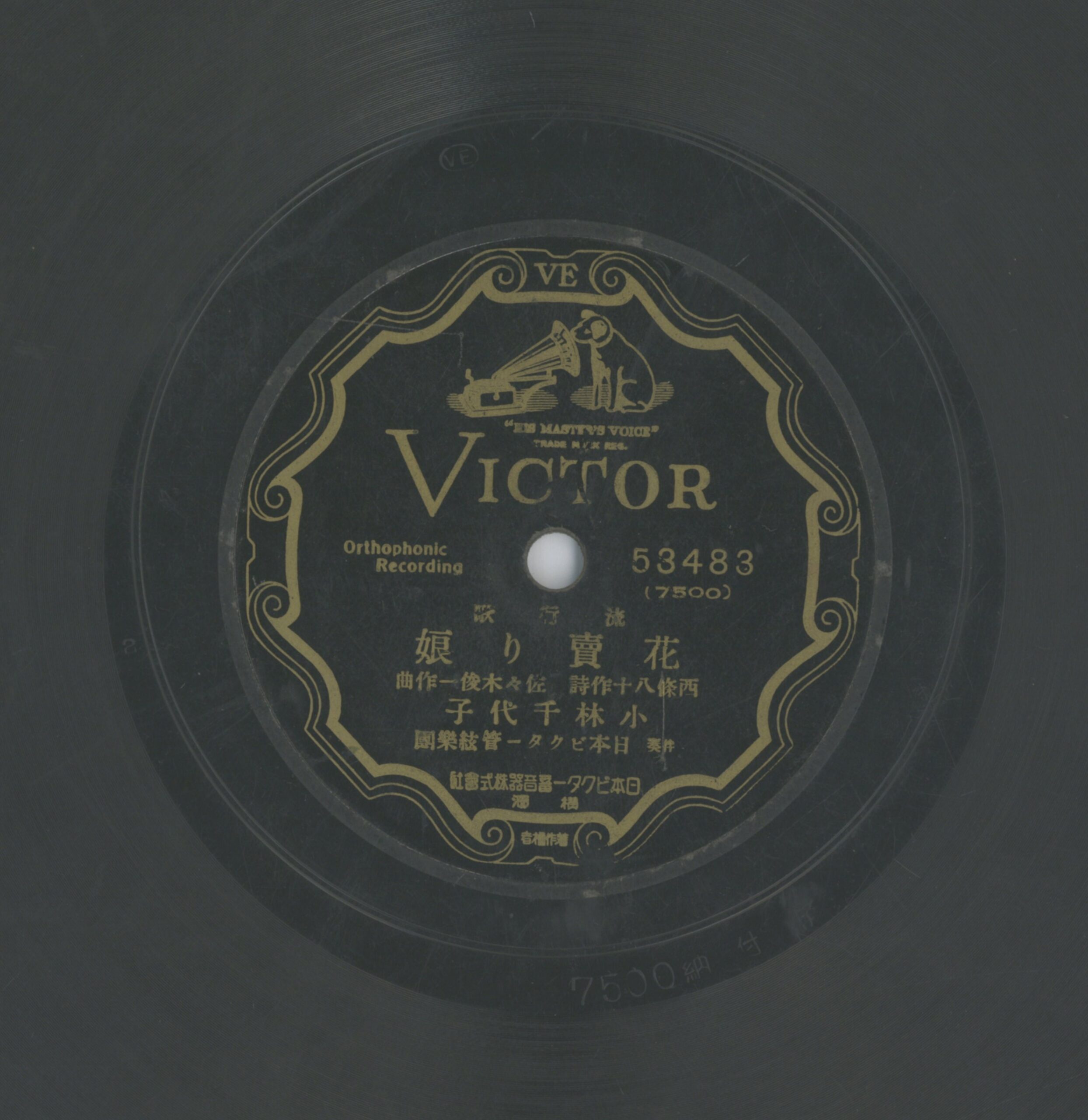 花賣り娘 演出者小林千代子演唱 日本ビクター管絃樂團伴奏創作者西條八十 作詩作詞 佐々木俊一作曲關鍵詞#流行歌內容日本ビクター蓄音器株式會社 橫濱聲音載體留聲機唱片發行編號ビクター (勝利)53483專輯年份《流行歌:あの灯あの街/花賣り娘》1935其他曲目A-あの灯あの街來源專案臺史博館藏錄音發布(2026) 相關照片