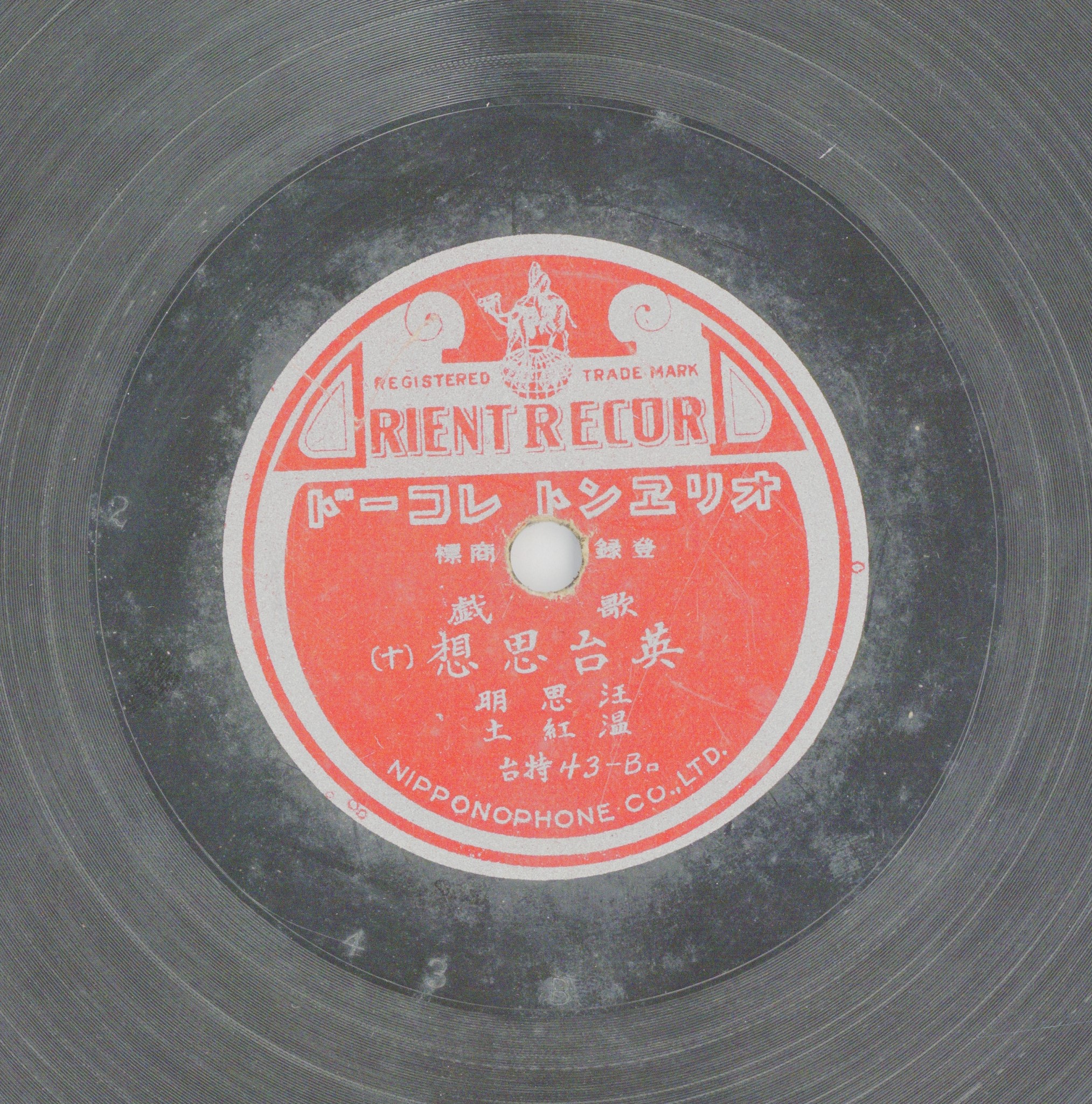 英台思想 (十) 演出者汪思明、溫紅土演唱關鍵詞#歌仔戲 #梁祝內容 歌仔戲曲,演出的是梁山伯 (三伯)與祝英台的故事。 依據唱片廣告資料,這批唱片為1926年12月發行。當時這類純粹演唱歌仔的唱片,唱片公司將之類別稱為「歌戲」,應該就是「歌仔戲」的意思。聲音載體留聲機唱片發行編號日蓄 (東洋)台特43專輯年份《歌戲:英台思想》1926其他曲目9-英台思想 (九) 11-英台思想 (十一) 12-英台思想 (十二) 13-英台思想 (十三) 14-英台思想 (十四) 15-英台思想 (十五) 16-英台思想 (十六)來源專案臺史博館藏錄音發布(2026) 相關照片