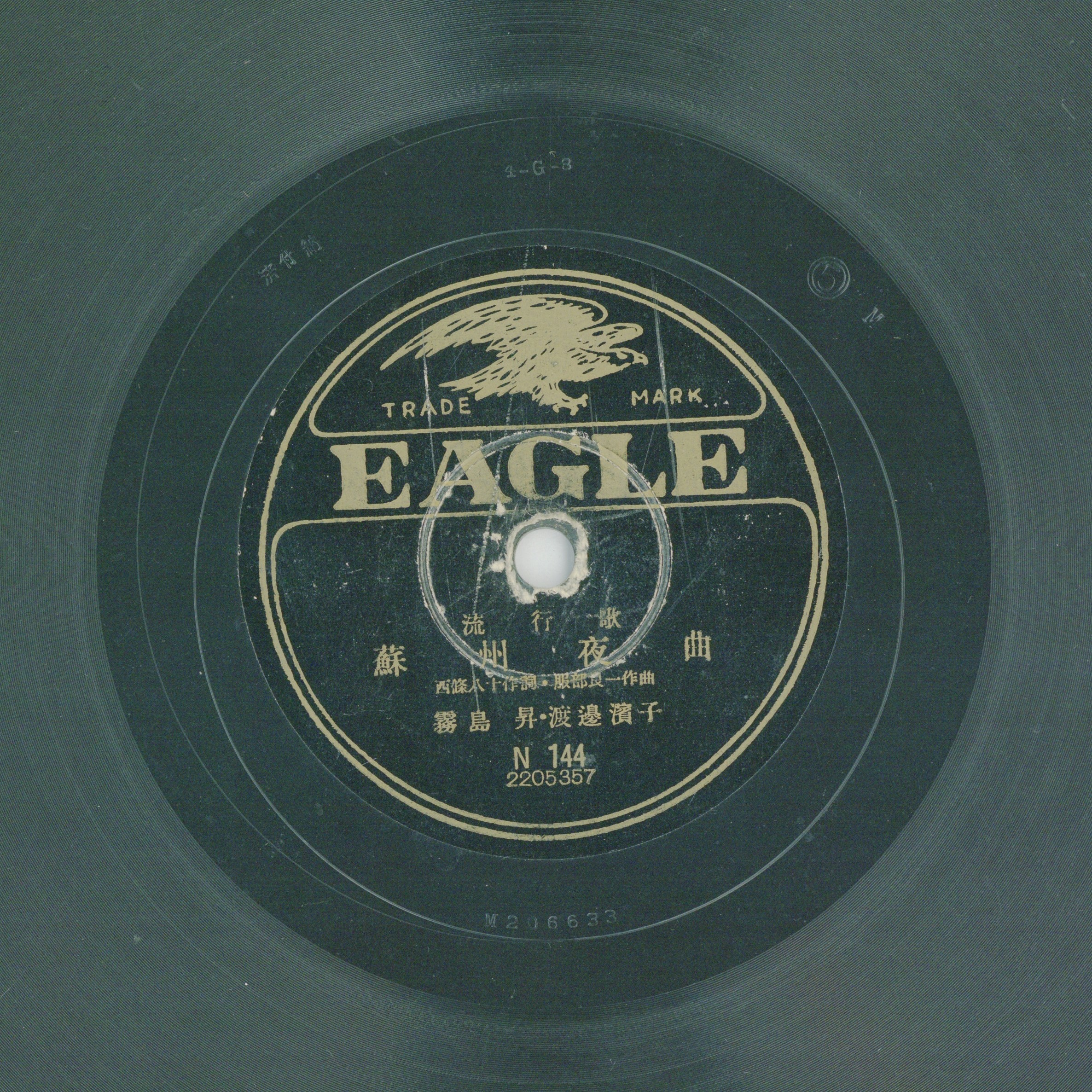 蘇州夜曲 演出者渡邊濱子、霧島昇演唱創作者西條八十作詞 服部良一作曲關鍵詞#流行歌 #小曲 #電影內容1940年日本電影支那之夜插曲,詞曲浪漫優美,充滿日本人想像中古典中國的氛圍,發行時受到日本統治下東亞地區的普遍歡迎,成為戰爭時局間最代表性的流行歌,於是固然詞曲浪漫,也被認為是宣傳日本軍國主義的歌曲。聲音載體留聲機唱片發行編號日蓄 (EAGLE)N144專輯年份《流行歌:支那之夜/蘇州夜曲》1940其他曲目A-支那之夜來源專案臺史博館藏錄音發布(2026) 歌詞/全文 君がみ胸に 抱かれて聞くは 夢の船唄 鳥の歌 水の蘇州の 花散る春を 惜しむか 柳がすすり泣く 相關照片
