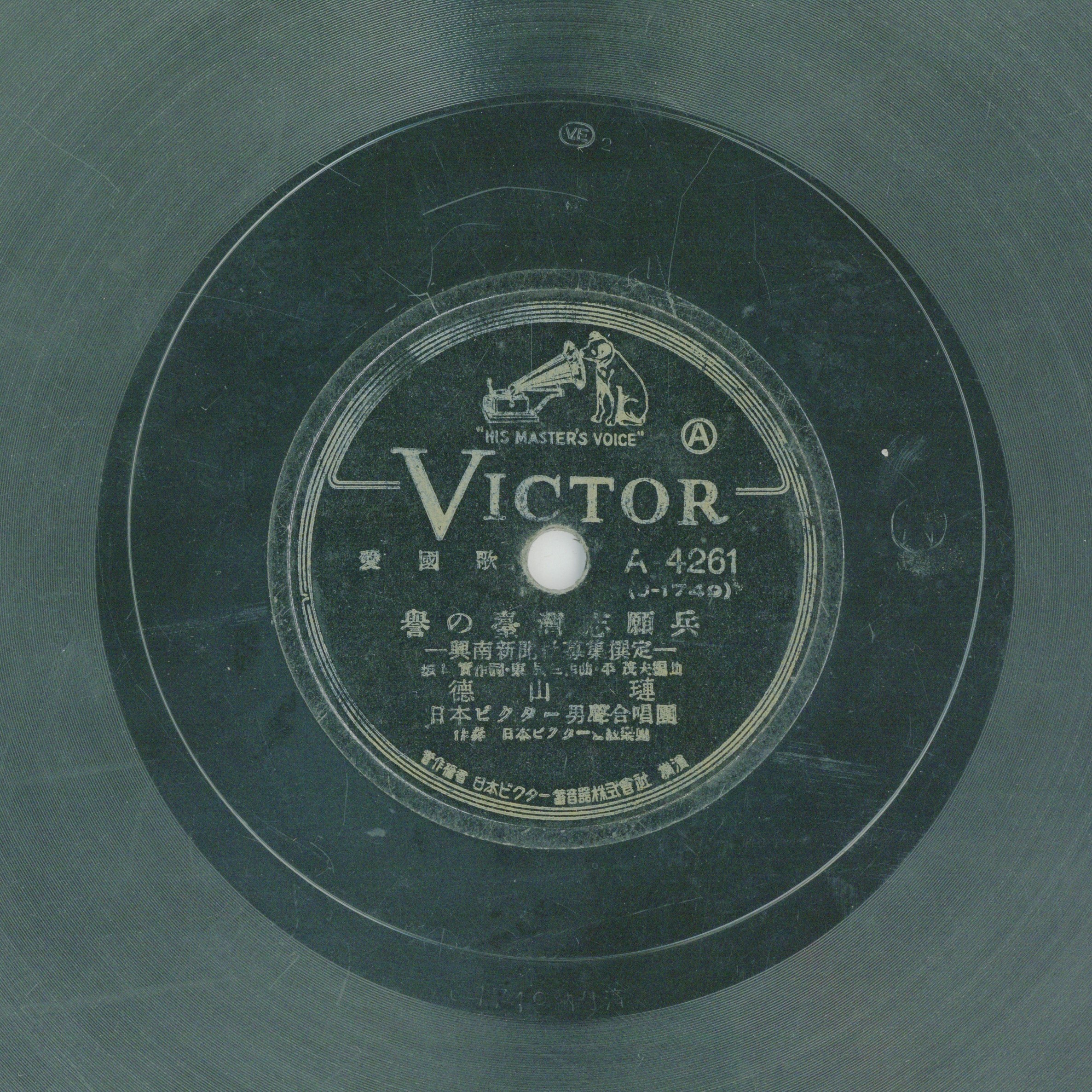 譽の臺灣志願兵 演出者德山璉演唱 日本ビクター管絃樂團伴奏創作者坂?實作詞 東辰三作曲 平茂夫編曲關鍵詞#愛國歌曲 #戰爭時局 #新民謠 #地方歌謠內容註明為「興南新聞社募集撰定」。聲音載體留聲機唱片發行編號ビクター (勝利)A-4261專輯年份《愛國歌:南進の歌/譽の臺灣志願兵》1940其他曲目A-南進の歌來源專案臺史博館藏錄音發布(2026) 相關照片