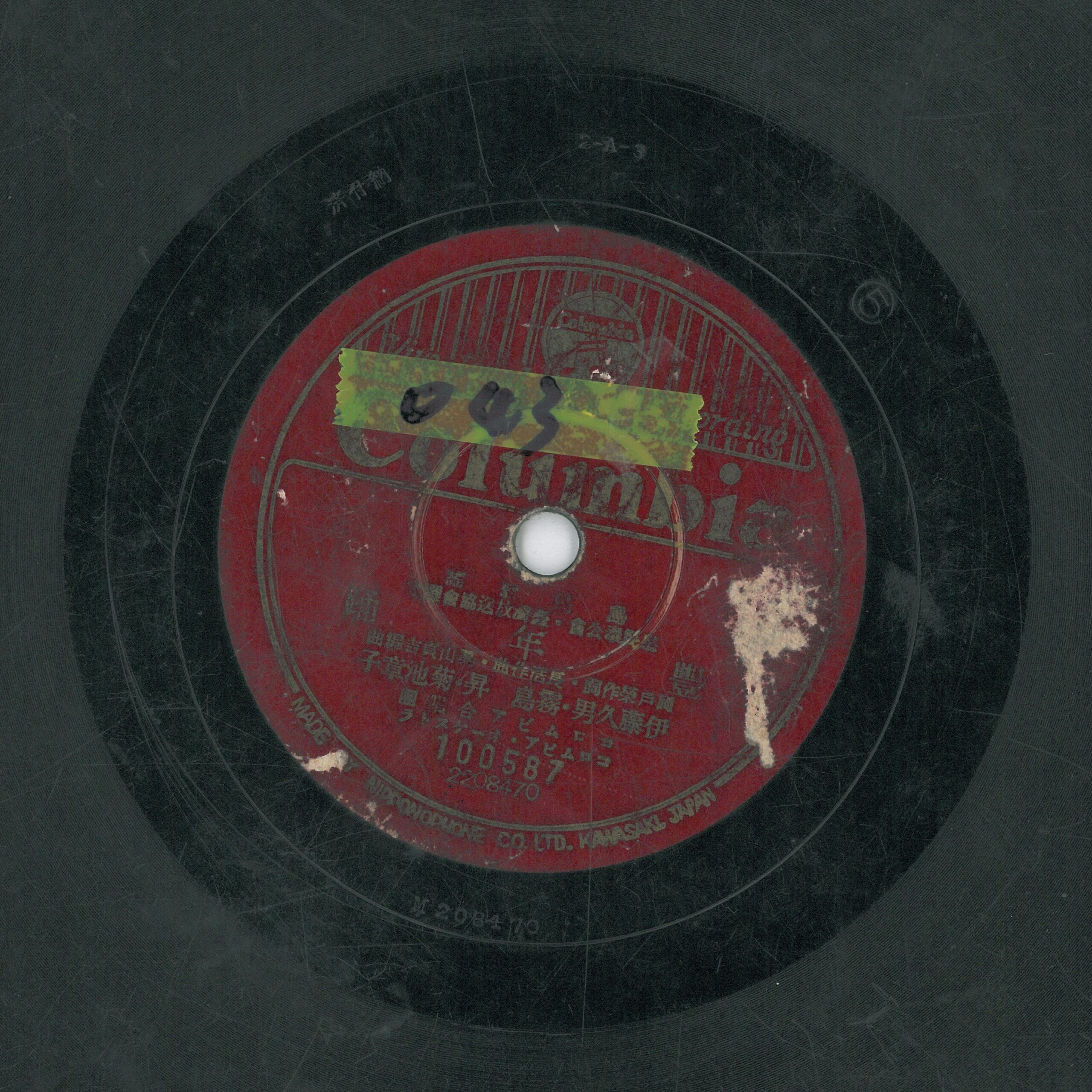 豐年踊 演出者伊藤久男、霧島昇、菊池章子、コロムビア合唱團演唱 コロムビア・オーケストラ伴奏創作者岡戶榮作詞 長浩作曲 奧山貞吉編曲關鍵詞#流行歌 #新民謠聲音載體留聲機唱片發行編號日蓄 (古倫美亞)100587專輯年份《皇民奉公會.臺灣放送協會選曲》1942其他曲目B-臺灣樂し來源專案吳三連中心寄存(2015) 相關照片