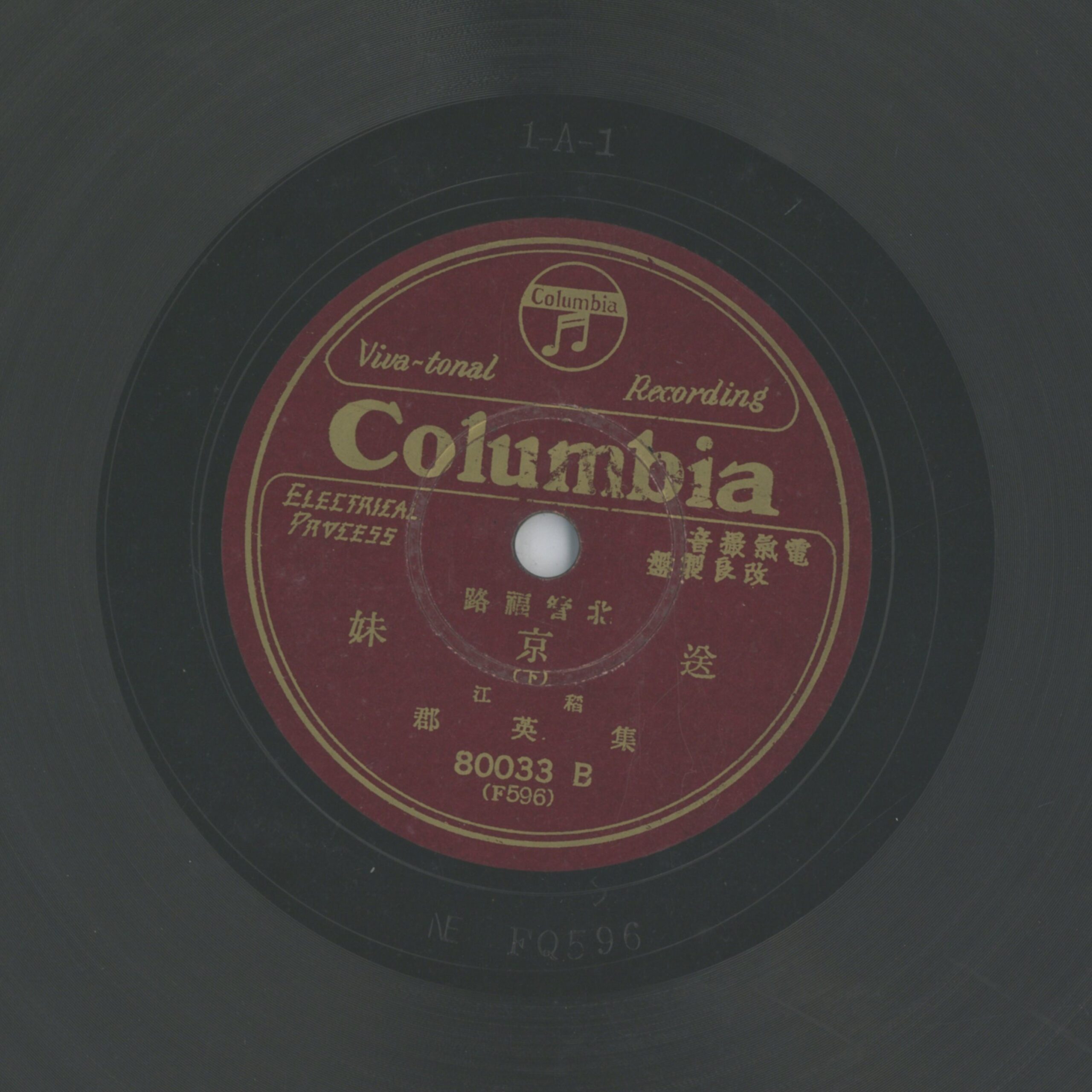 送京妹 (下) 演出者稻江 集英郡演唱關鍵詞#北管 #子弟聲音載體留聲機唱片發行編號日蓄 (古倫美亞-臺灣)80033專輯年份《北管福路:送京妹》1930其他曲目A-送京妹 (上)來源專案臺史博館藏錄音發布(2026) 相關照片