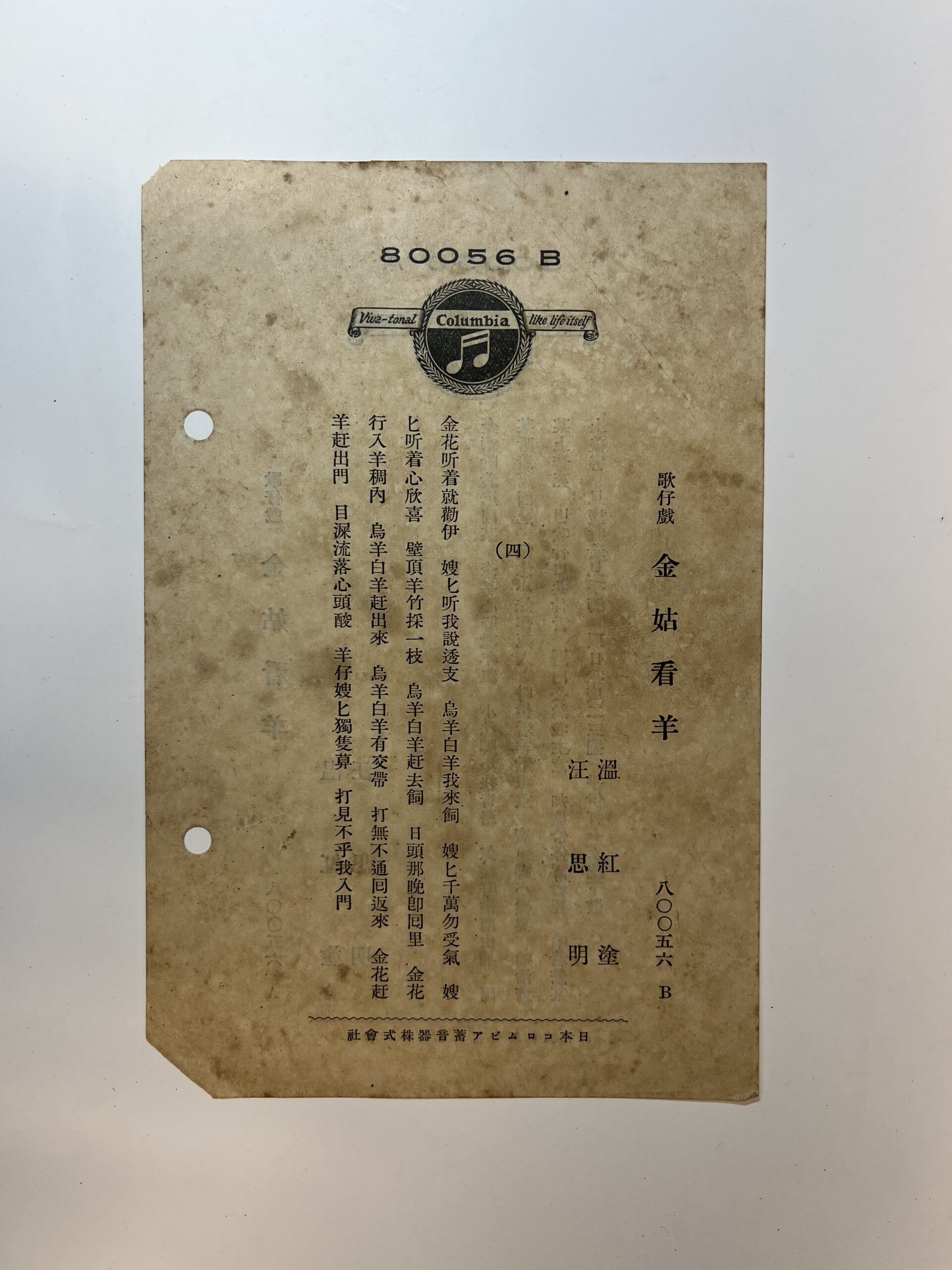 金姑看羊 (四) 演出者溫紅塗、汪思明演唱關鍵詞#歌仔戲聲音載體留聲機唱片發行編號日蓄 (古倫美亞-臺灣)80056專輯年份《歌仔戲:金姑看羊》1930其他曲目3-金姑看羊 (三)來源專案臺史博館藏錄音發布(2026) 歌詞/全文 1. 金花聽著就勸伊 嫂ヒ听我說透支 烏羊白羊我來飼 嫂ヒ千萬勿受氣 2. 嫂ヒ聽著心欣喜 壁頂羊竹採一枝 烏羊白羊趕去飼 日頭那晚即回里 3. 金花行入羊稠內 烏羊白羊趕出來 烏羊白羊有交帶 打無不通回返來 4. 金花趕羊趕出門 目屎流落心頭酸 羊仔嫂ヒ獨隻算 打見不乎我入門 相關照片