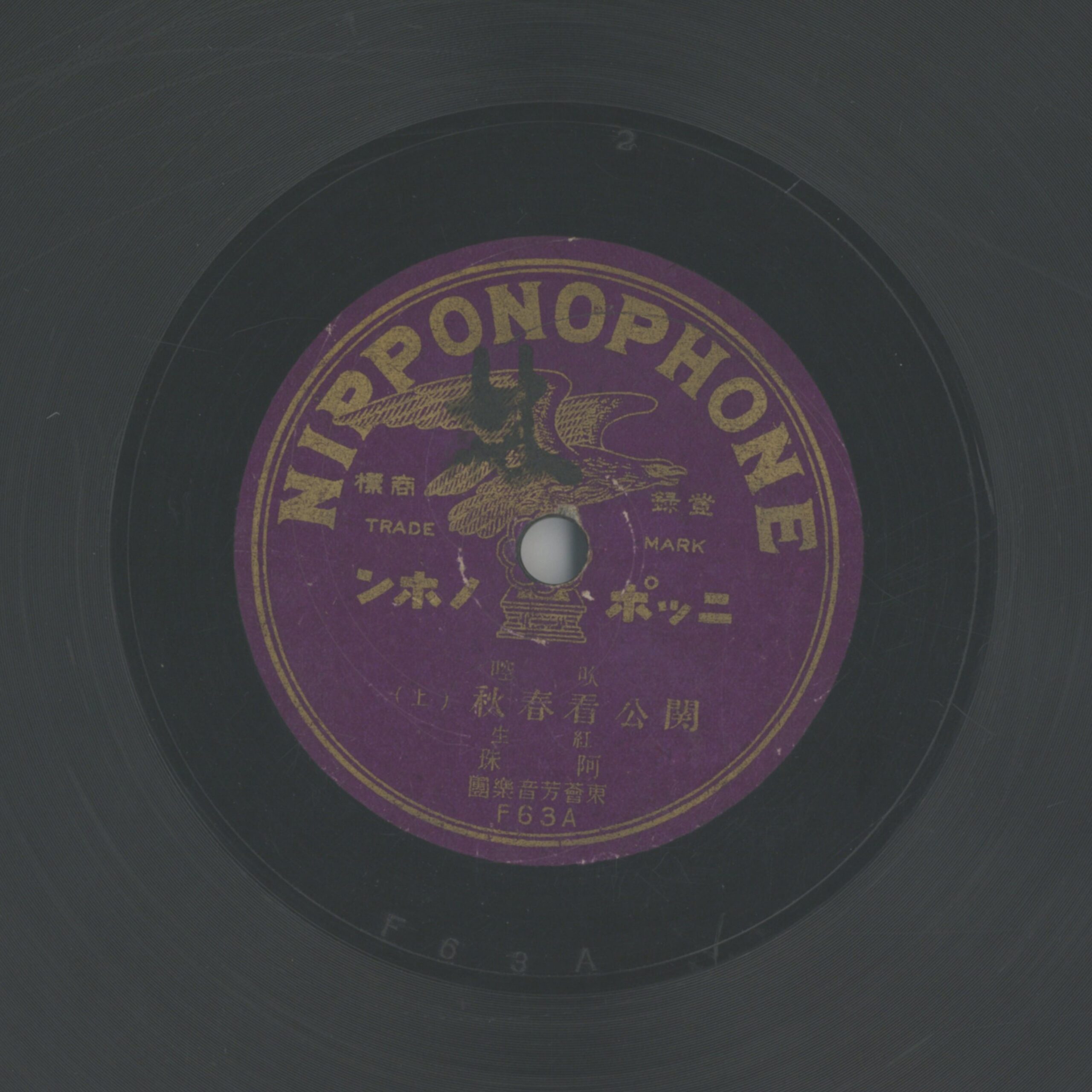 關公看春秋 (上) 演出者紅生 阿珠演唱 東薈芳音樂團伴奏關鍵詞#北管曲 #京劇 #吹腔 #關公聲音載體留聲機唱片發行編號日蓄 (鷹標紫色)F63專輯年份《吹腔:關公看春秋》1926~29其他曲目B-關公看春秋 (下)來源專案臺史博館藏錄音發布(2026) 相關照片