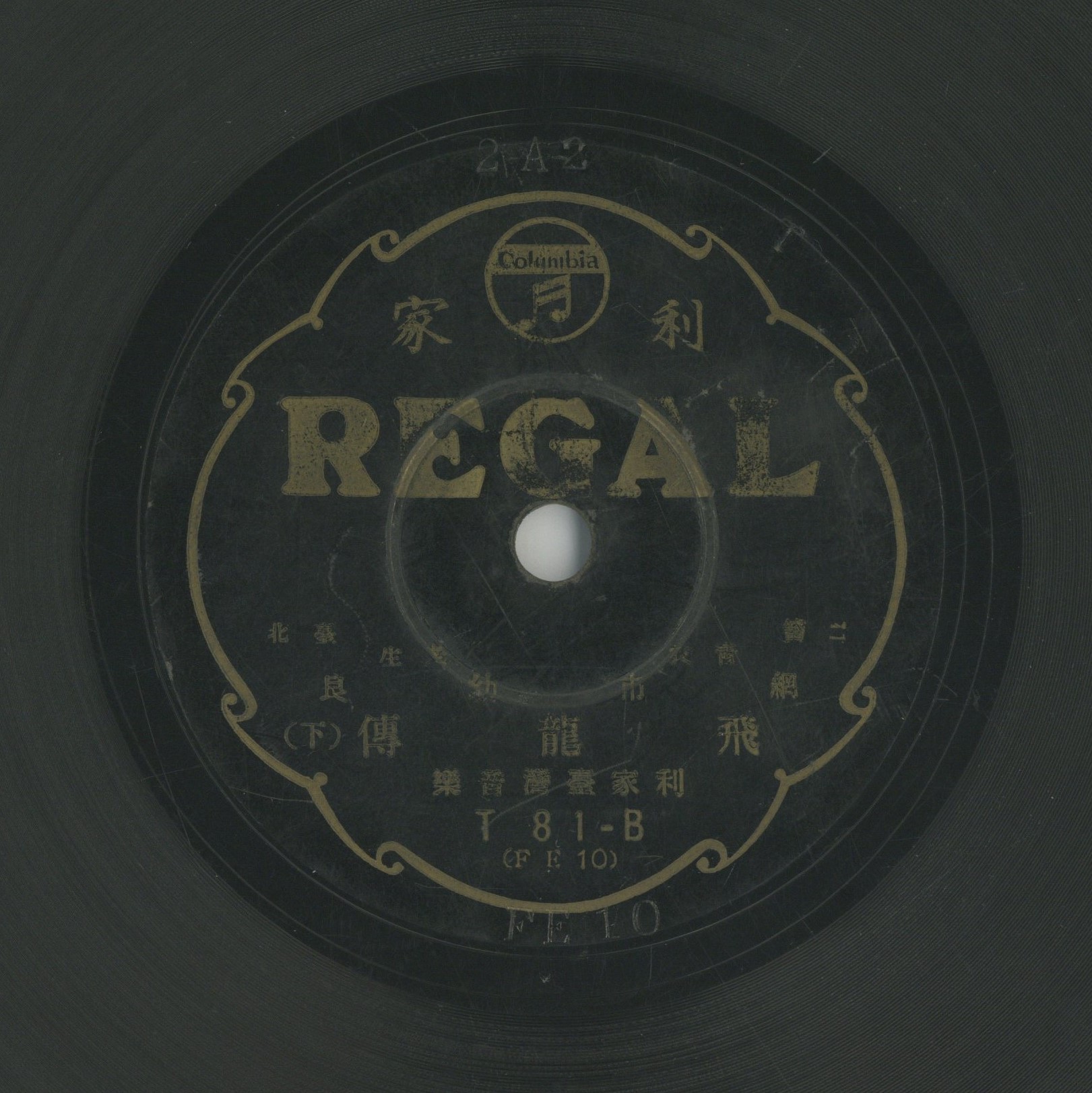 飛龍傳 (下) 演出者青衣:網市、老生:幼良演唱 臺灣飛鷹音樂團伴奏關鍵詞#京劇 #正音 #藝旦內容錄音(母盤)編號為F.E.10聲音載體留聲機唱片發行編號古倫美亞 (利家-黑)T81專輯年份《二簧:飛龍傳》1931錄音;1933~34出版其他曲目A-飛龍傳 (上)來源專案臺史博館藏錄音發布(2026) 相關照片