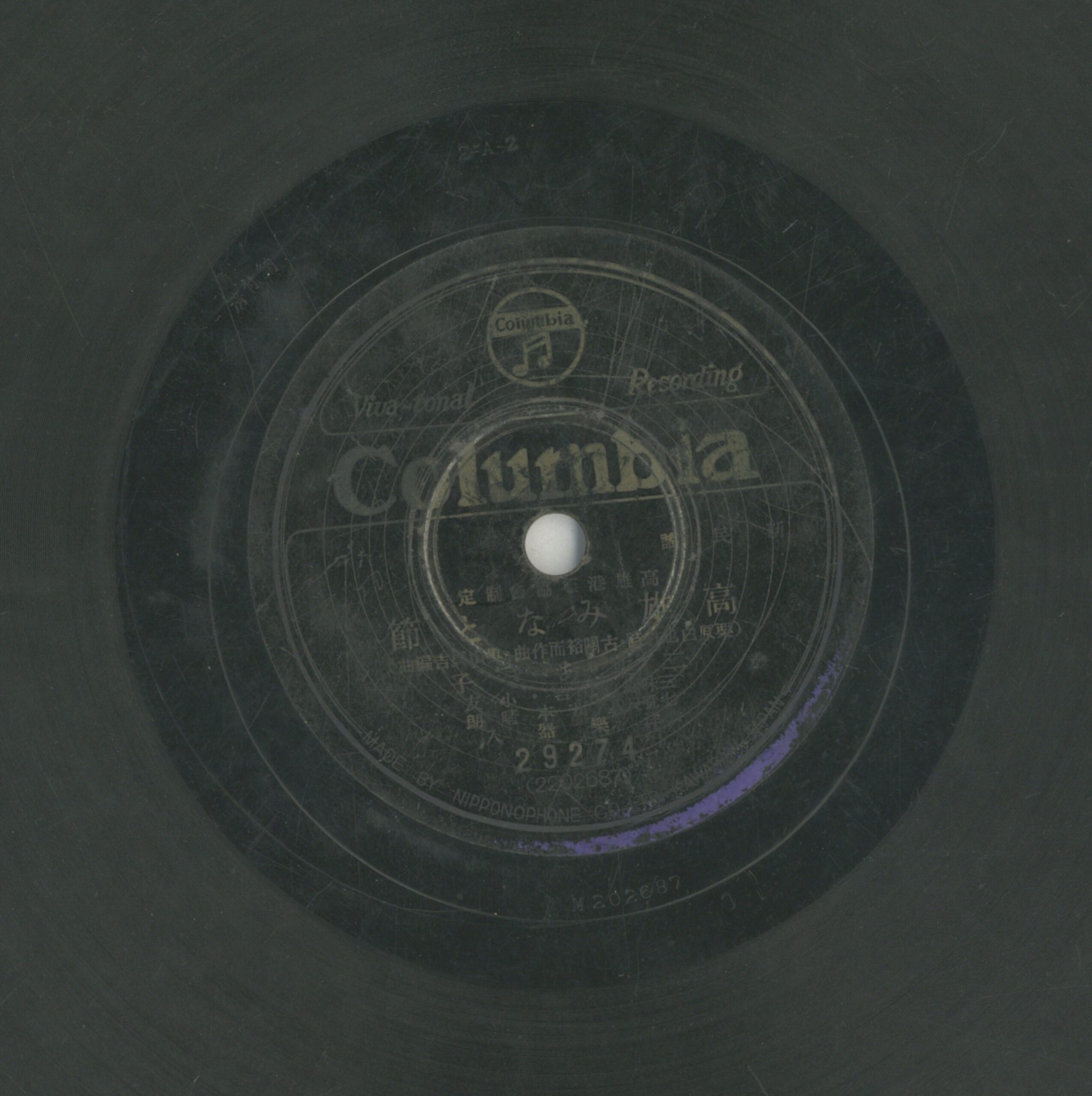 高雄みなと節 演出者二葉あき子演唱創作者栗原白也作詞 古關裕而作曲 奧山貞吉編曲關鍵詞#新民謠 #地方民謠內容高雄港祭協會制定的歌曲,「新民謠」指新創作的地方特色歌曲。高雄在1935年首次舉辦港祭,以強化都市欣欣向榮的港都形象,吸引眾多參與者。三味線:?吉、小友;七孔尺八:川本晴朗,洋樂器伴奏聲音載體留聲機唱片發行編號日蓄 (古倫美亞)29274專輯年份《新民謠:高雄港祭協會制定》1937其他曲目A-高雄港まつり音頭來源專案臺史博館藏錄音發布(2026) 相關照片