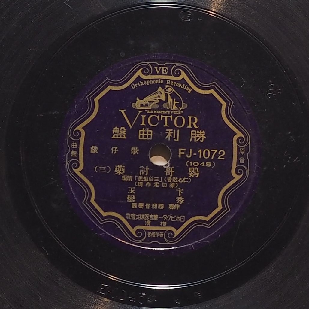 鸚哥討藥 (三) 演出者卞玉、秀鑾演唱 勝利音樂團伴奏創作者陳加走作詞關鍵詞#歌仔戲 #梁祝內容劇目註明為「(仁心送書)三伯思想續編」。為祝英台獨白說唱,簡述與梁三伯(梁哥)互萌愛意的過程,收到俾女仁心送到三伯的信件,以鸚哥向她討取藥方,要她信息之意。聲音載體留聲機唱片發行編號ビクター (勝利)FJ1072專輯年份《歌仔戲:鸚哥討藥(三伯想思續編)》1935~1936專輯資訊劇目註明為「(仁心送書)三伯思想續編」。全套共3張,本片為第2張。其他曲目1-鸚哥討藥 (一) 2-鸚哥討藥 (二) 4-鸚哥討藥 (四) 5-鸚哥討藥 (五) 6-鸚哥討藥 (六)來源專案臺史博館藏錄音發布(2026) 相關照片